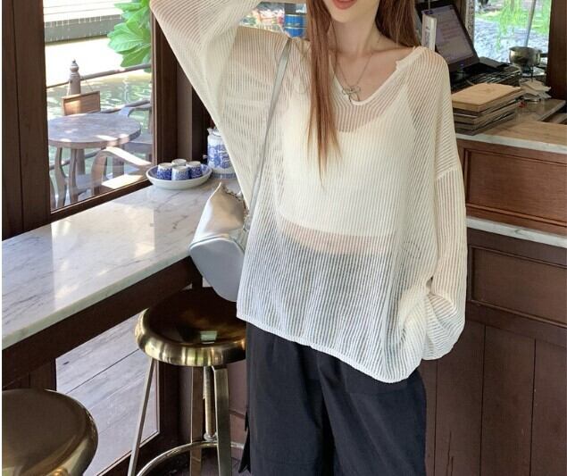 ルーズな着こなしもオシャレに見える透かし素材の長袖プルオーバー。