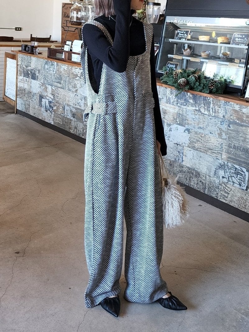 トレンドのツイード素材のサロペット。