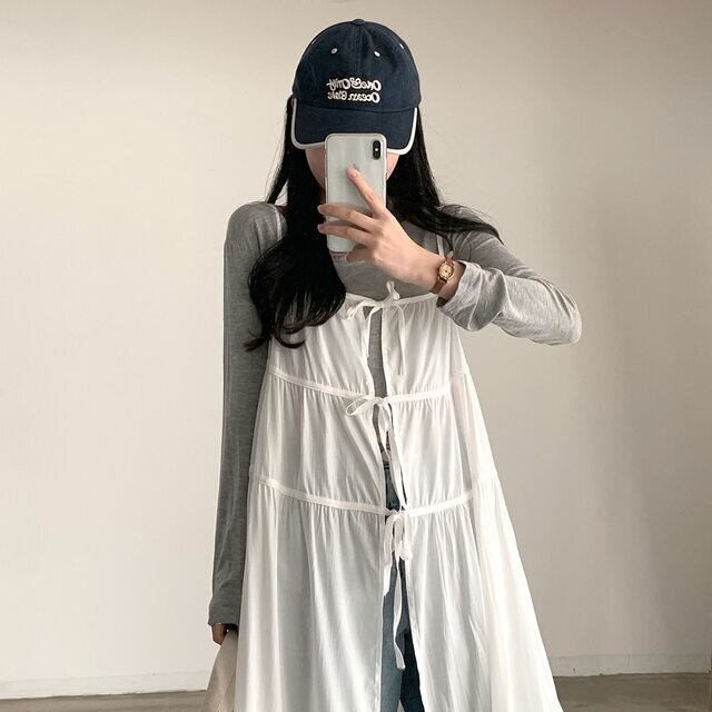 切り替え位置が高めでスタイルアップ効果があり、ロング丈のティアードデザインが女性らしさを演出してくれます。