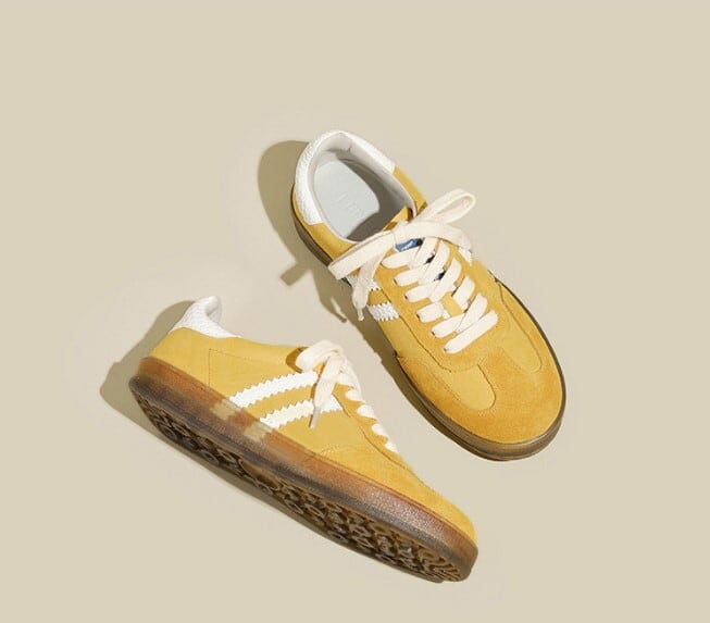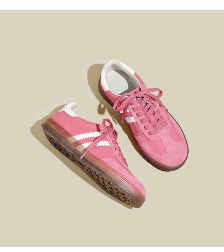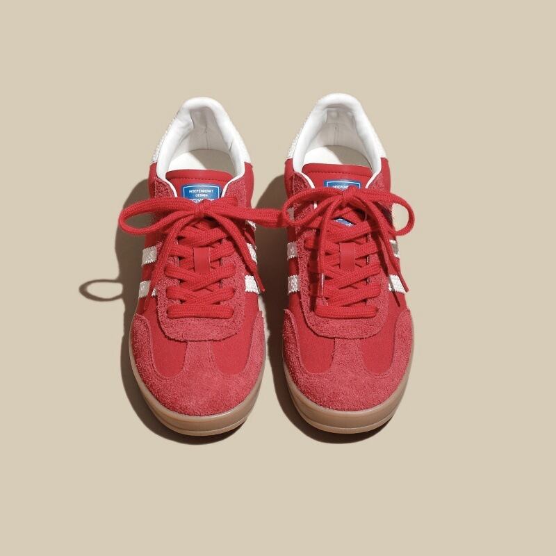 柔らかなフェイクスエードにギザギザのスリーストライプスをあしらったスニーカー。