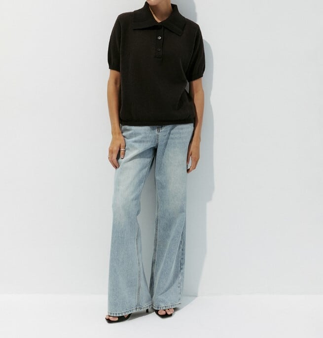 襟付きのポロシャツ風デザインで、スポーティな印象を与えてくれます。