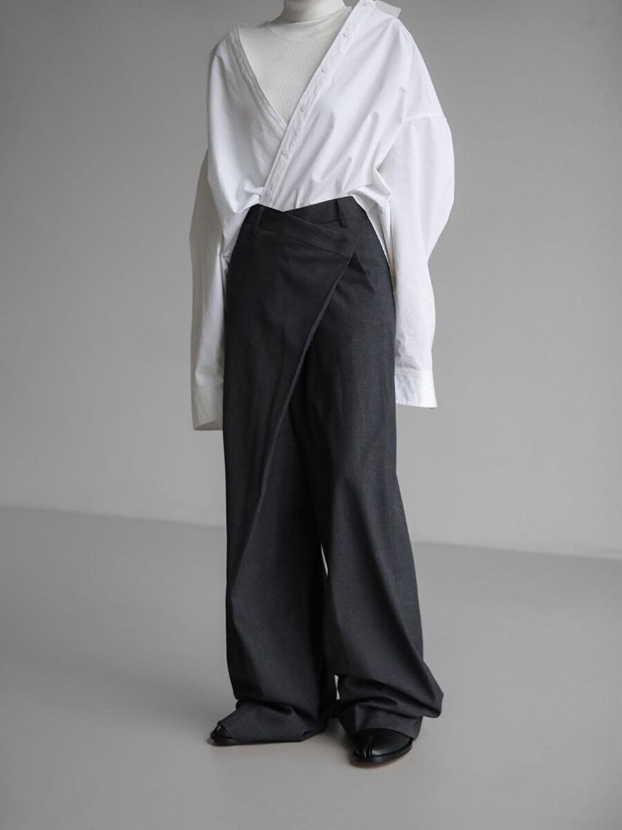 トレンド感あるラップデザインが目を引くロングパンツ。
