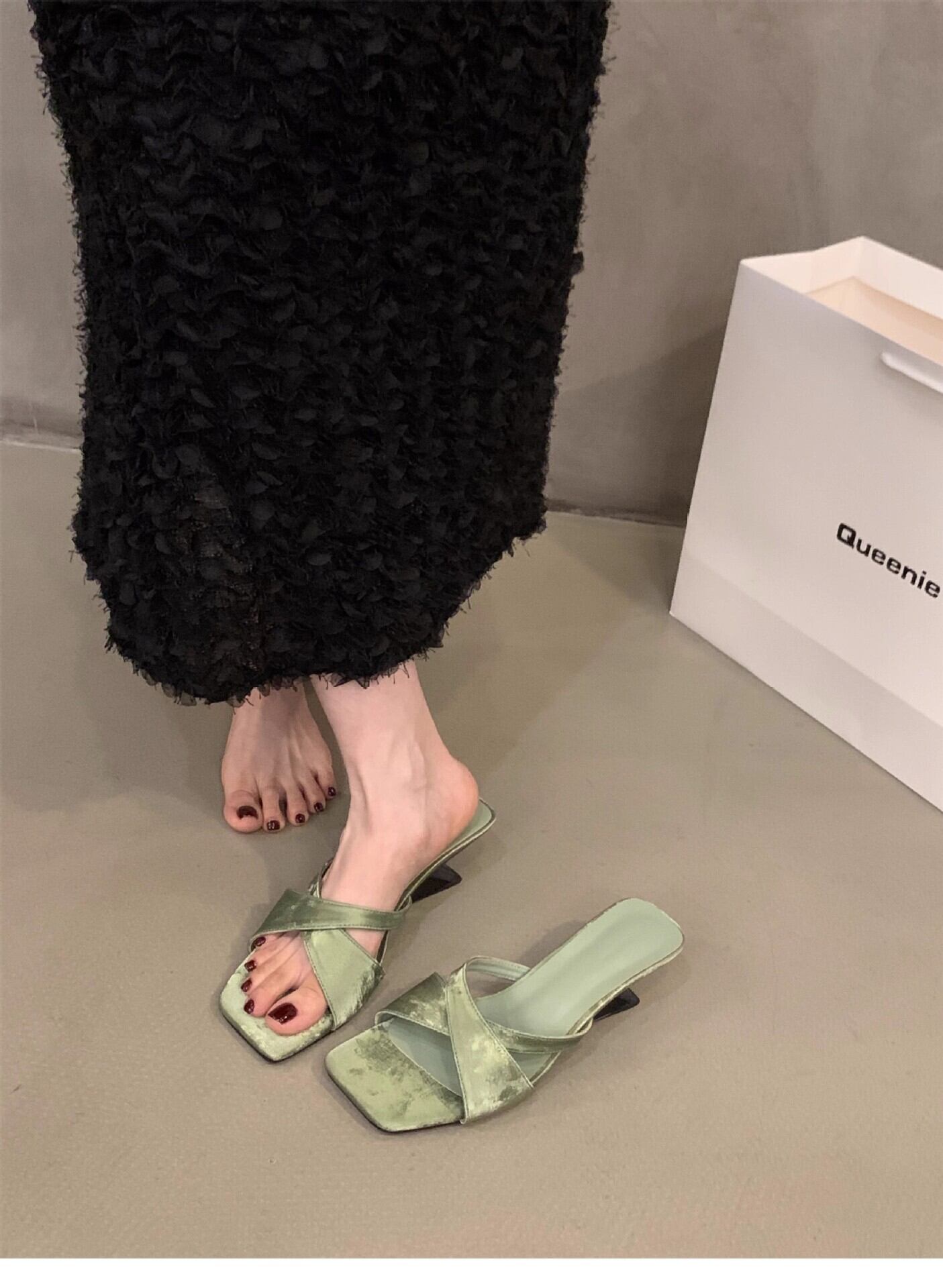 クロスストラップとデザインヒールが大人っぽく履けるサンダル。