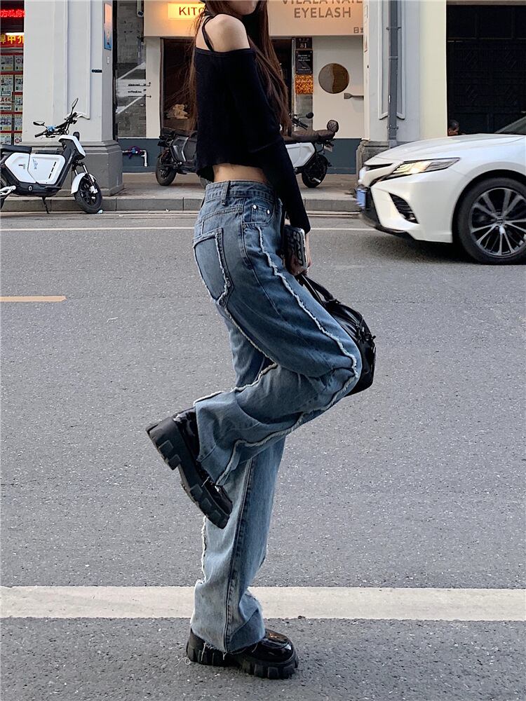 配色フリンジデザインで、個性を魅せる!主役級のアクセントが効いた、大人のカジュアルワイドデニム。