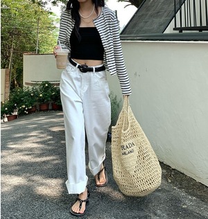 コンパクトめなトップスなので、ワイドシルエットのボトムス合わせでトレンドライクな着こなしに◎