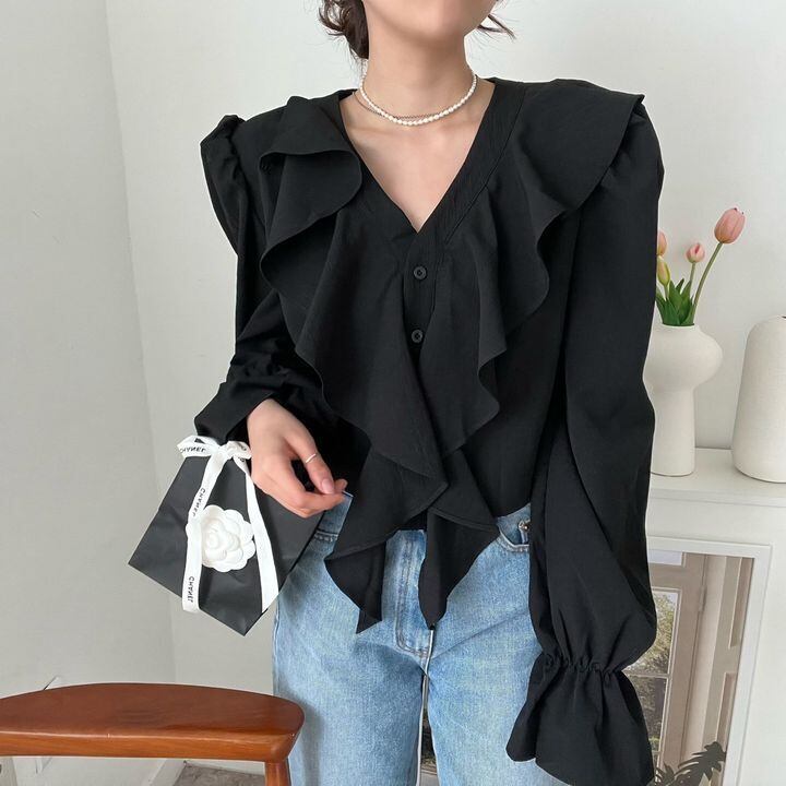 程よく甘いフリルが春コーデの主役になってくれるブラウス。