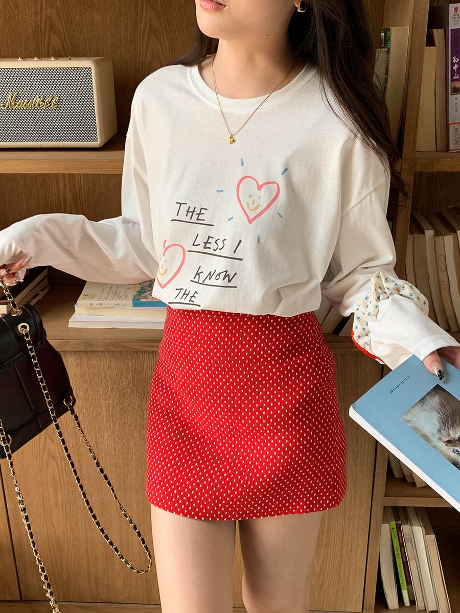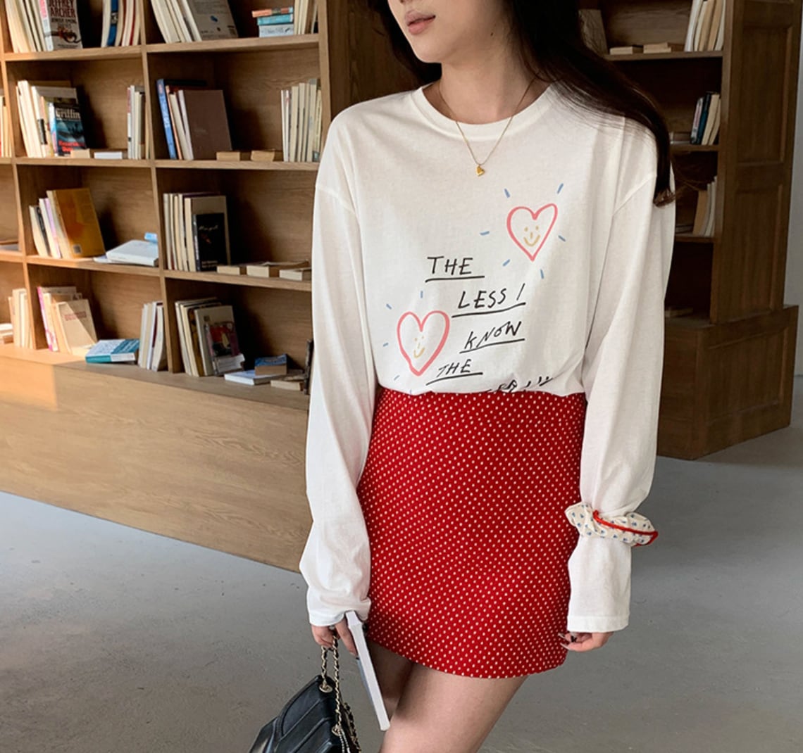 ロゴの配色とレトロ感が目を惹くハートのデザインTシャツ。