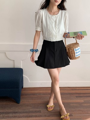 バルーン袖が可愛いラインに細見え抜群の拘ったトップス。