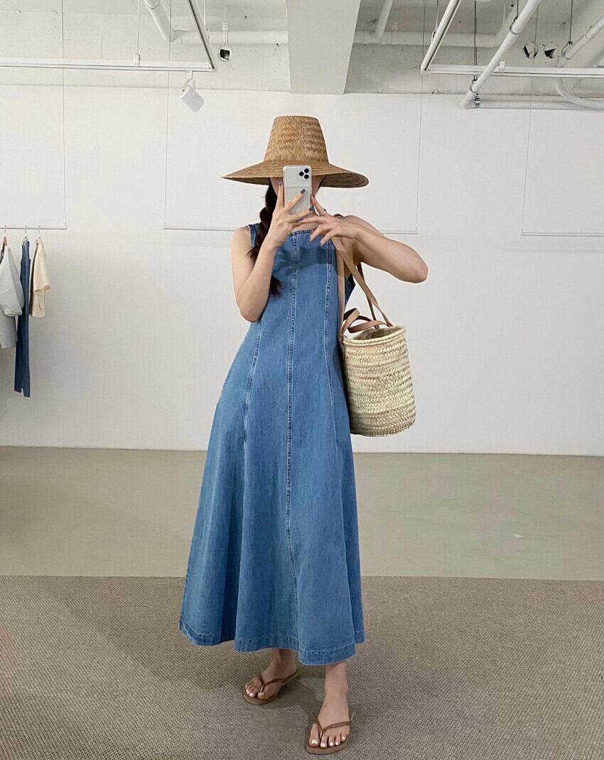 ストンとしたシルエットで大人の魅力を引き立てるデニムワンピース。