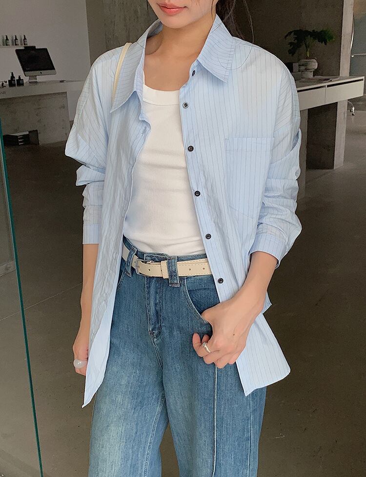 程よいゆとりのあるシルエットが、大人なこなれ感を感じさせるストライプ柄のオーバーサイズシャツ。