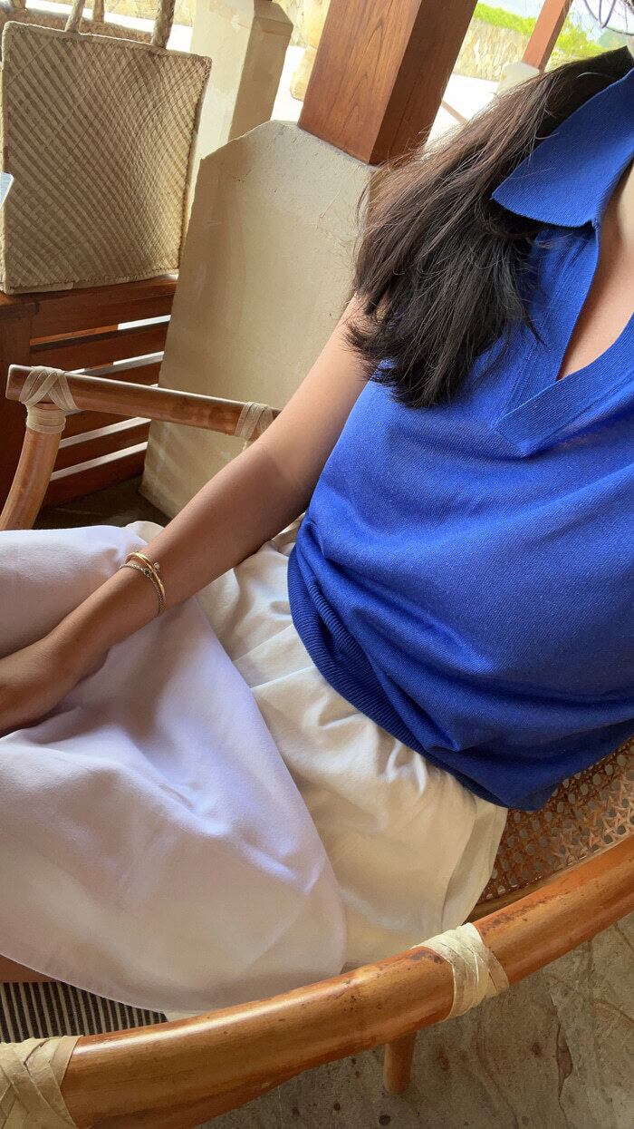 カジュアルながら大人がキレイ目な雰囲気でも着られる工夫をしています。