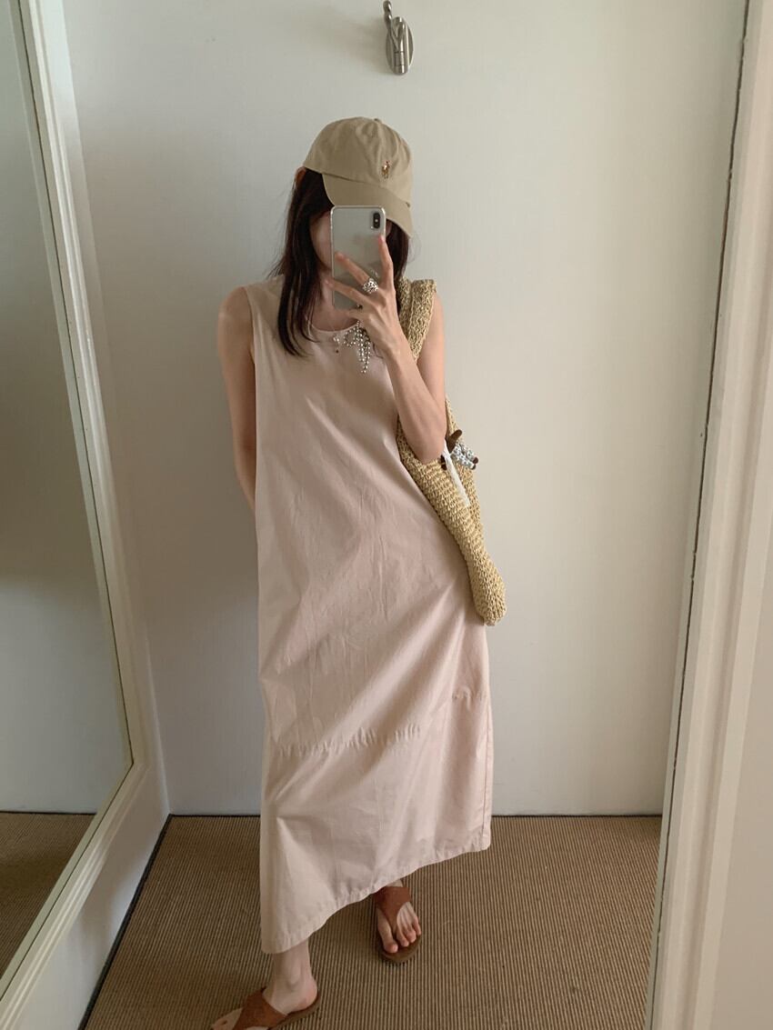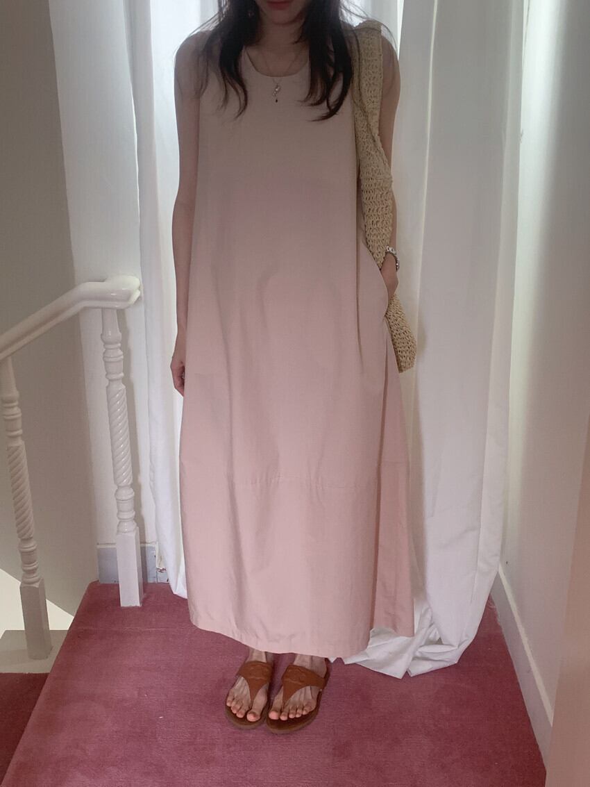 涼しく快適な着用感のワンピースで体型カバーしつつフェミニンな印象を与えてくれます。