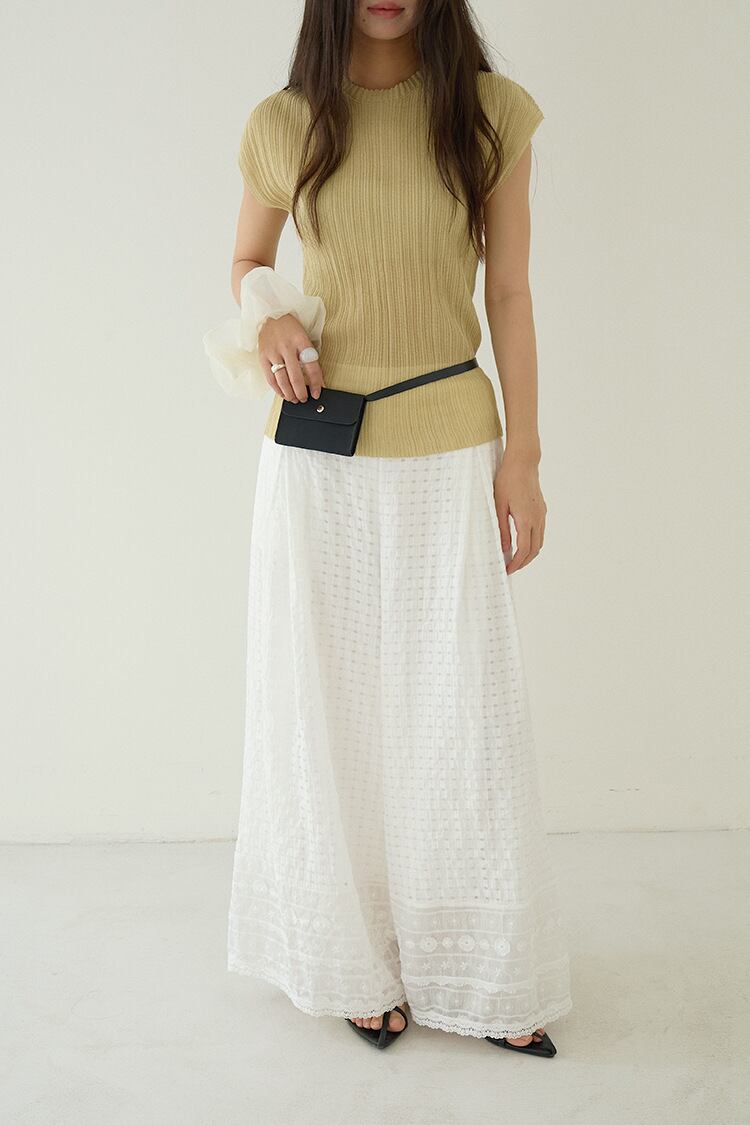 カジュアルなスタイリングにプラスするだけで、女性らしさを引き上げるレースパンツ。