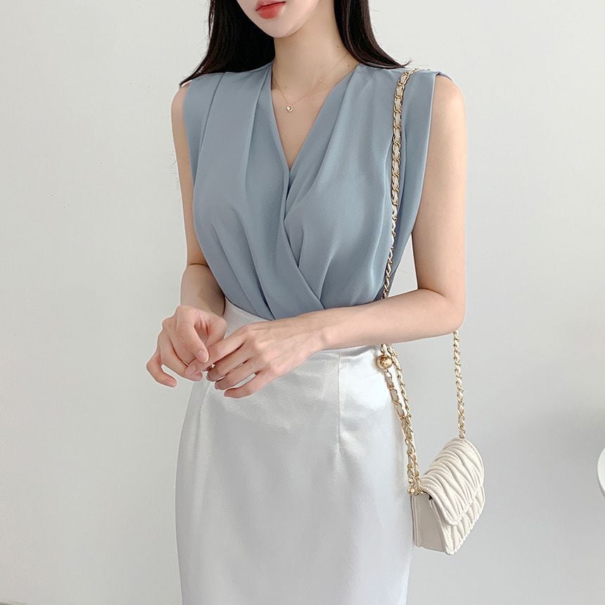 デコルテをすっきりと見せ、大人っぽいシルエットを演出してくれるトップス。