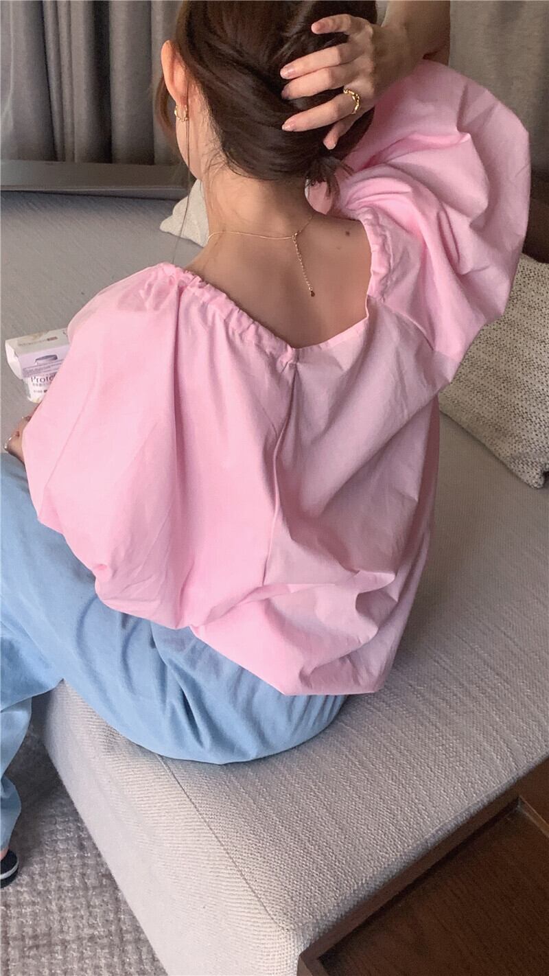 たっぷりとギャザーを寄せた、キレイめに着ていただけるブラウスとワイドパンツのセットアップ。