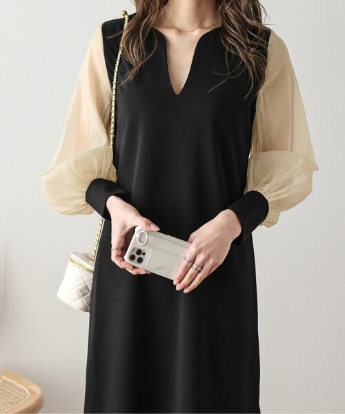 シアースリーブ異素材切替がおしゃれなワンピース。