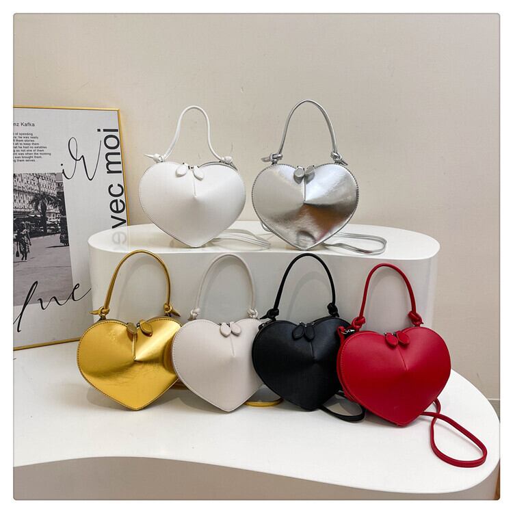 ころんとしたフォルムがキュートなハート型ポシェット。