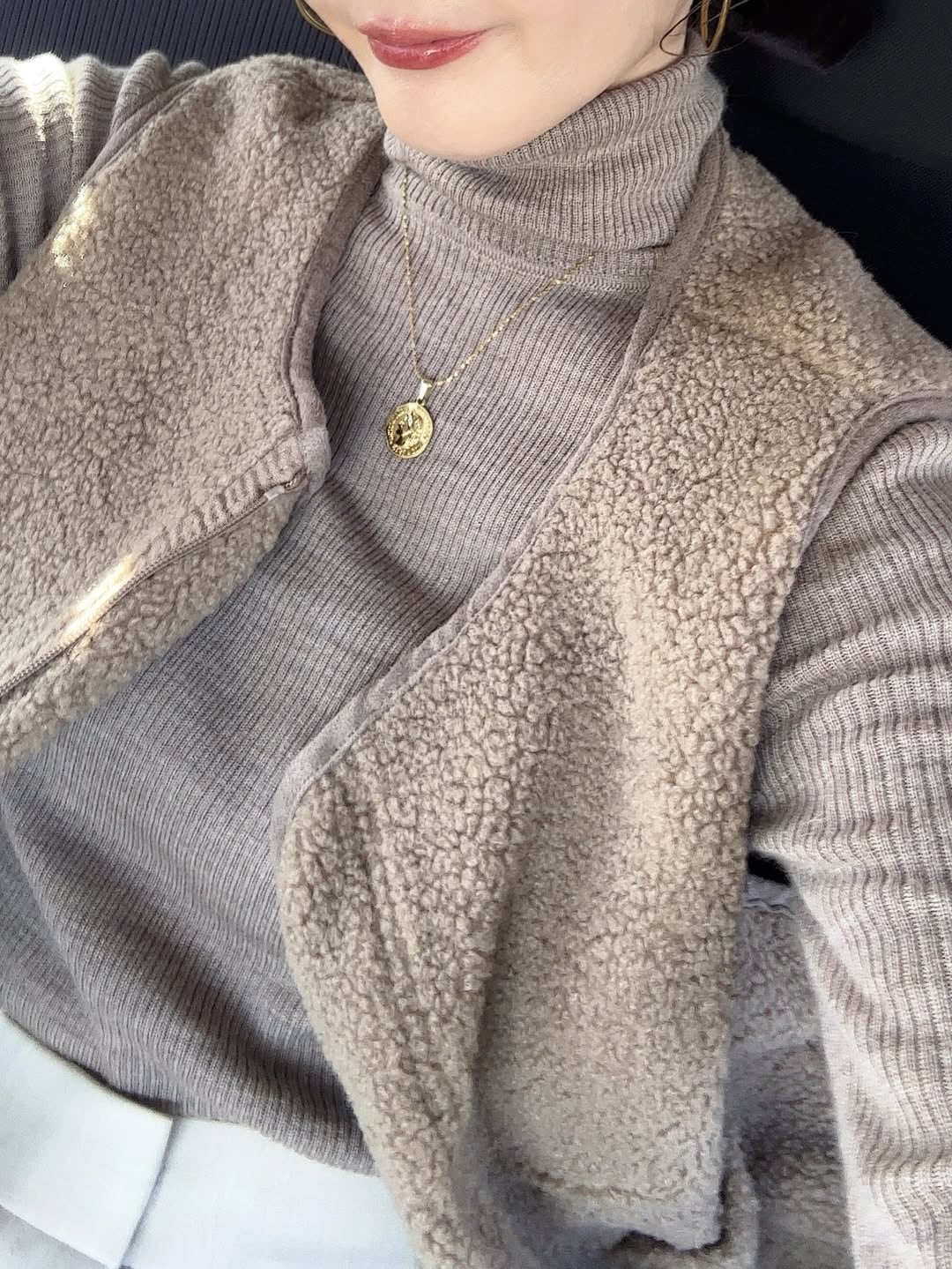 もこもこ感がたまらないノーカラーフリースベスト!