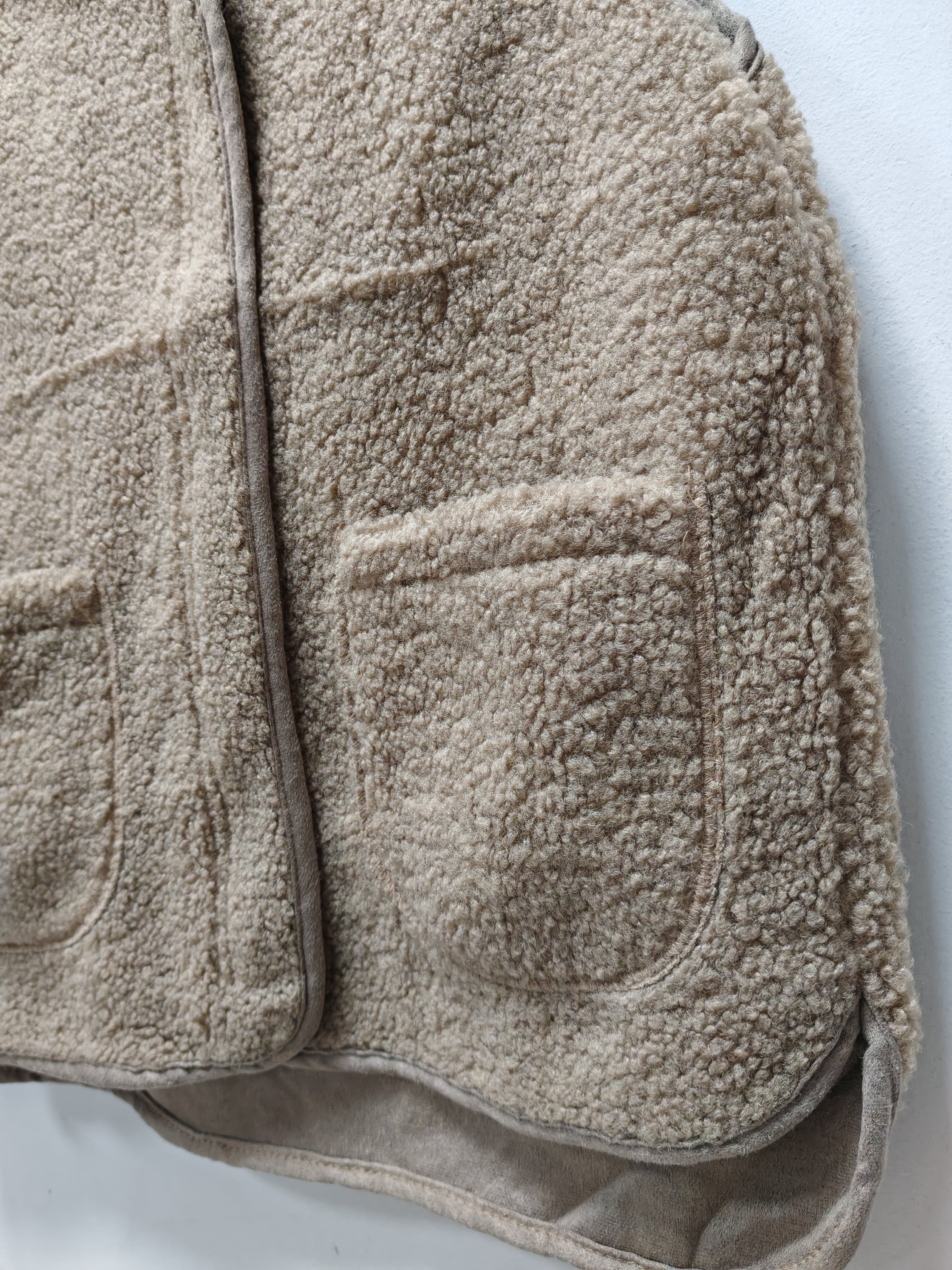 柔らかなフリース素材を使用しており、着心地は抜群です。ノーカラーのデザインが女性らしさを引き立て、シンプルなコーディネートにもぴったりのアイテムです。カジュアルにも、上品にもアレンジ可能で、さまざまなスタイルを楽しむことができます◎