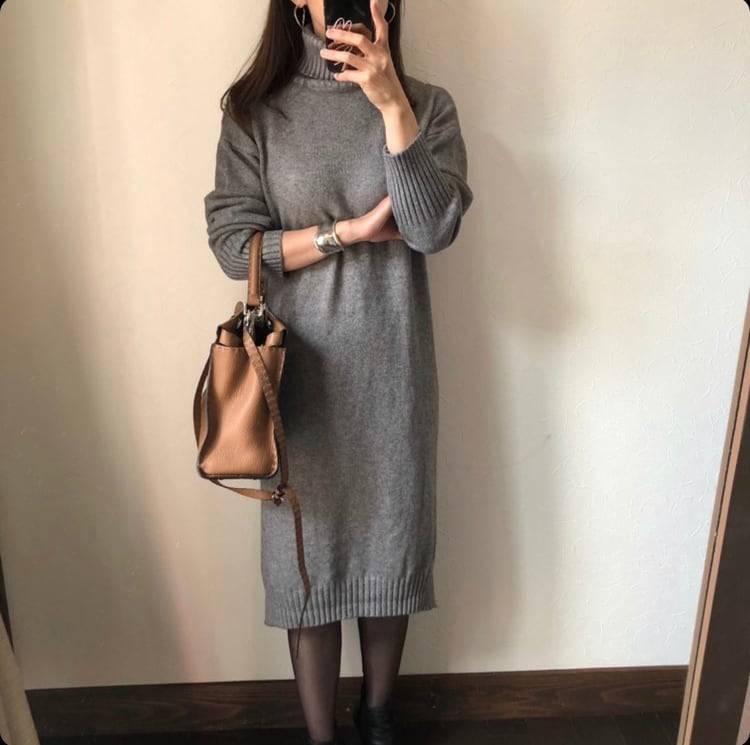 ゆったりとしたデザインで、リラックスムードのあるニットワンピース。