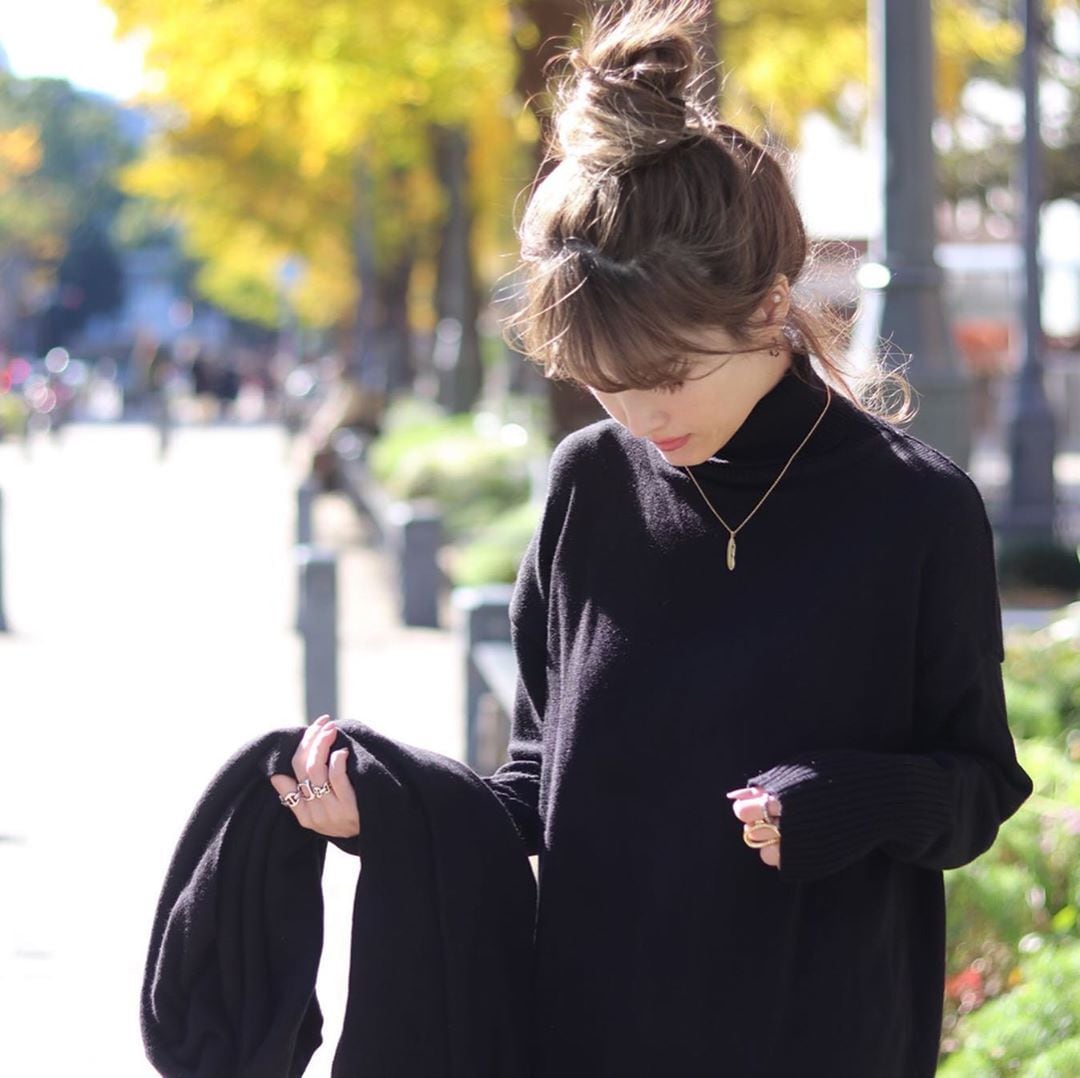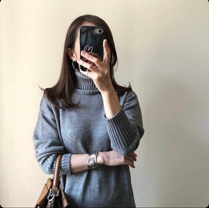 ゆるっとした衿元のタートルネックデザインがあったか&女子力UPのポイントに。