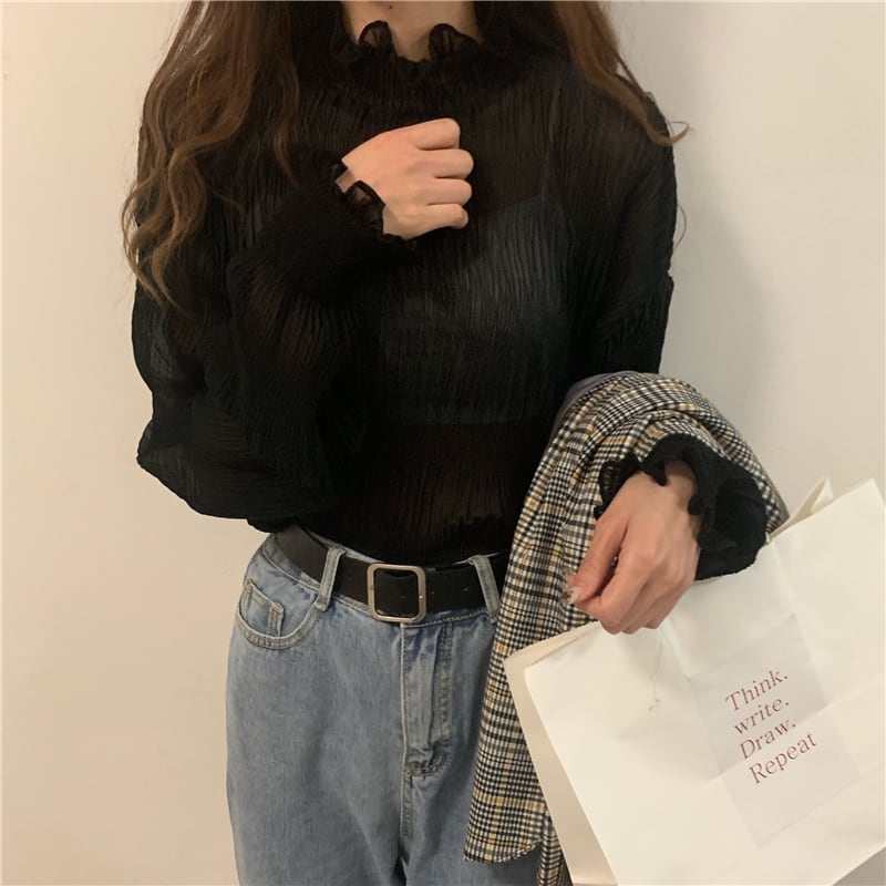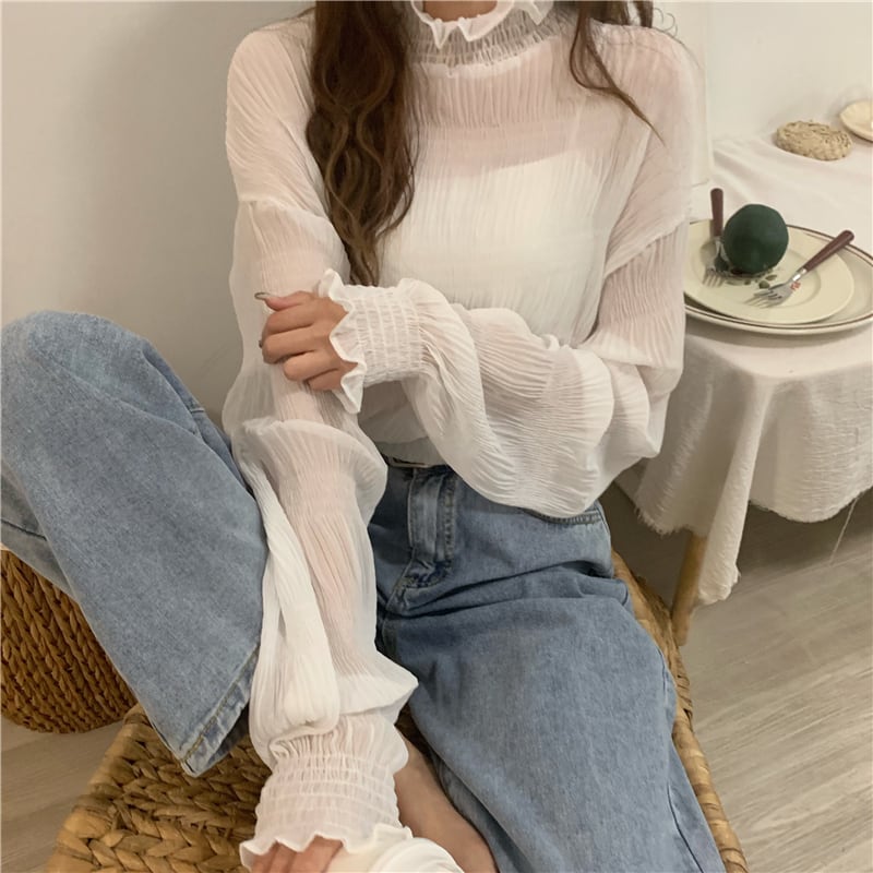 フリルの袖と透け感があるシアーな素材感がgood☆