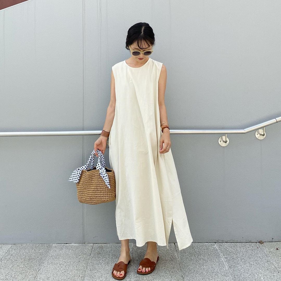 オーバーサイズのミモレ丈ワンピースです。