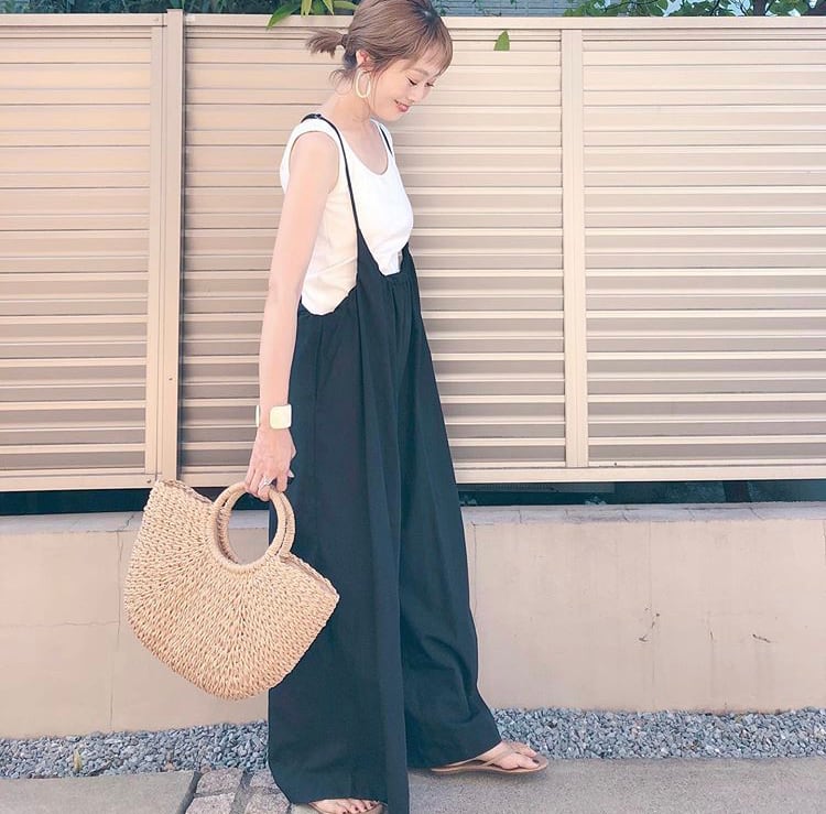 お出かけや普段着に大人気のワイドパンツオールインワンです。