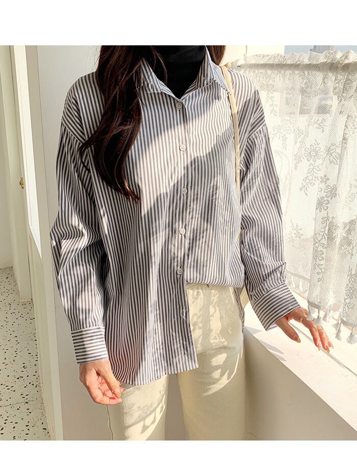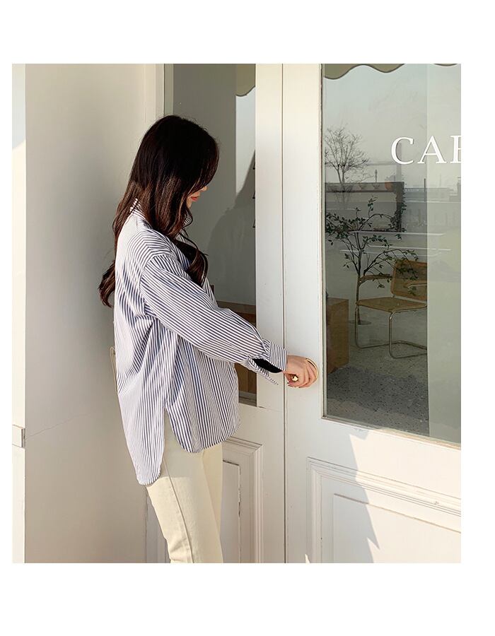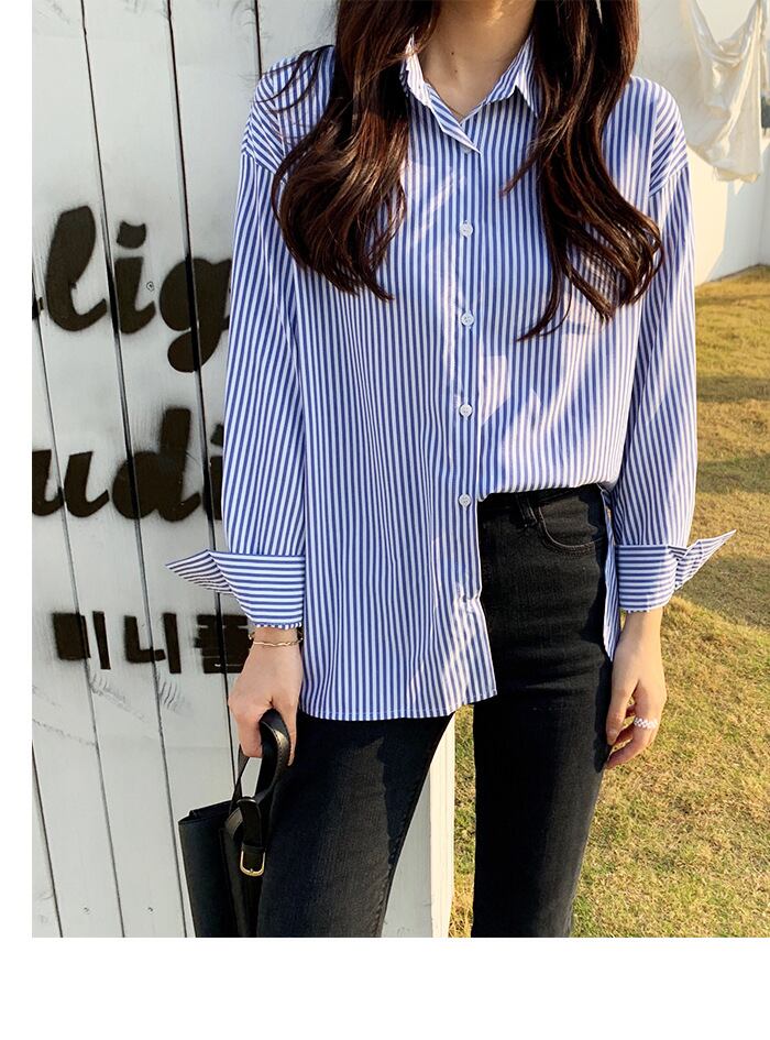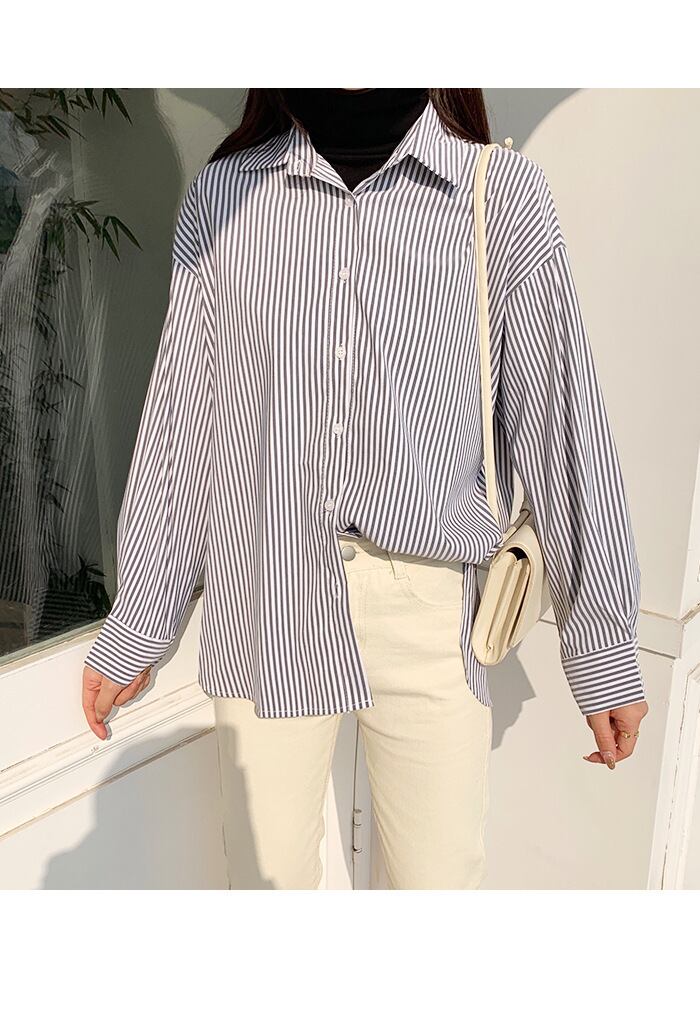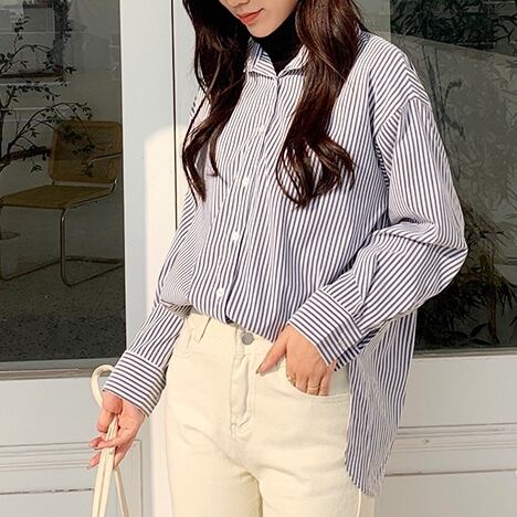 流行のストライプ柄が印象的なこのブラウスは、シンプルながらもスタイリッシュなデザインで、デイリーユースに最適です!お仕事やカジュアルな外出時にも威力を発揮するアイテムです。フロントボタンと襟付きのデザインが、女性らしさを引き立てます。