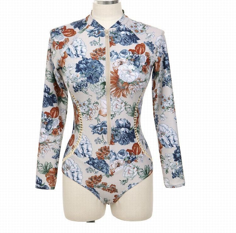 2カラー/水着/ワンピース/ヒョウ柄//花柄/長袖/スイムウエアー