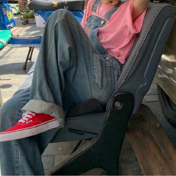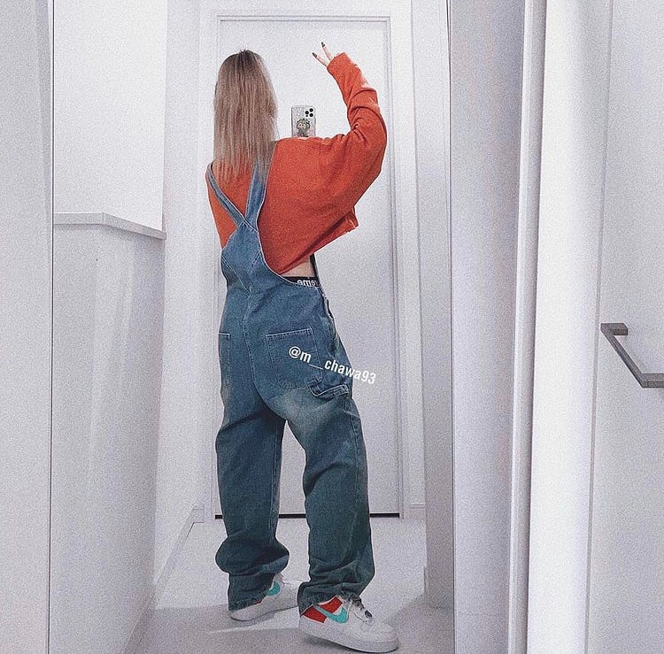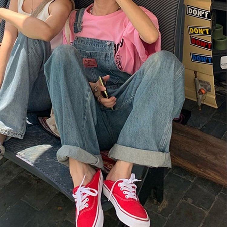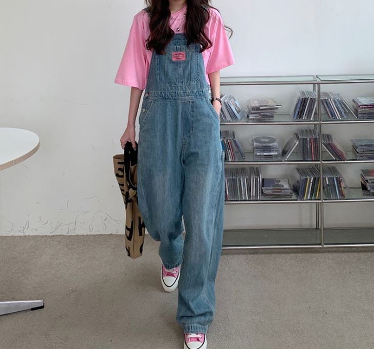 ワンポイントのブランドのロゴが可愛いデニムのサロペットパンツ。
