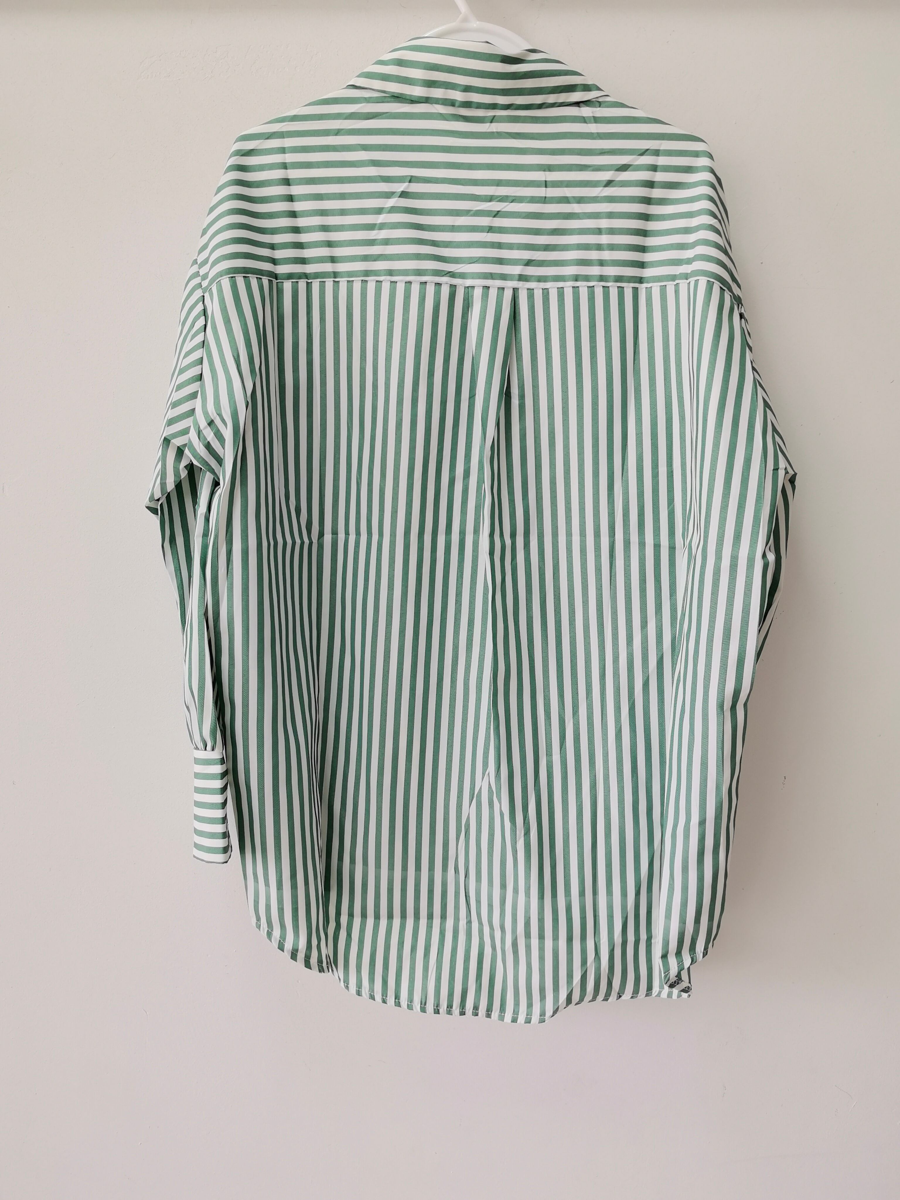 ゆったりとしたシルエットで大人可愛い印象のストライプシャツです