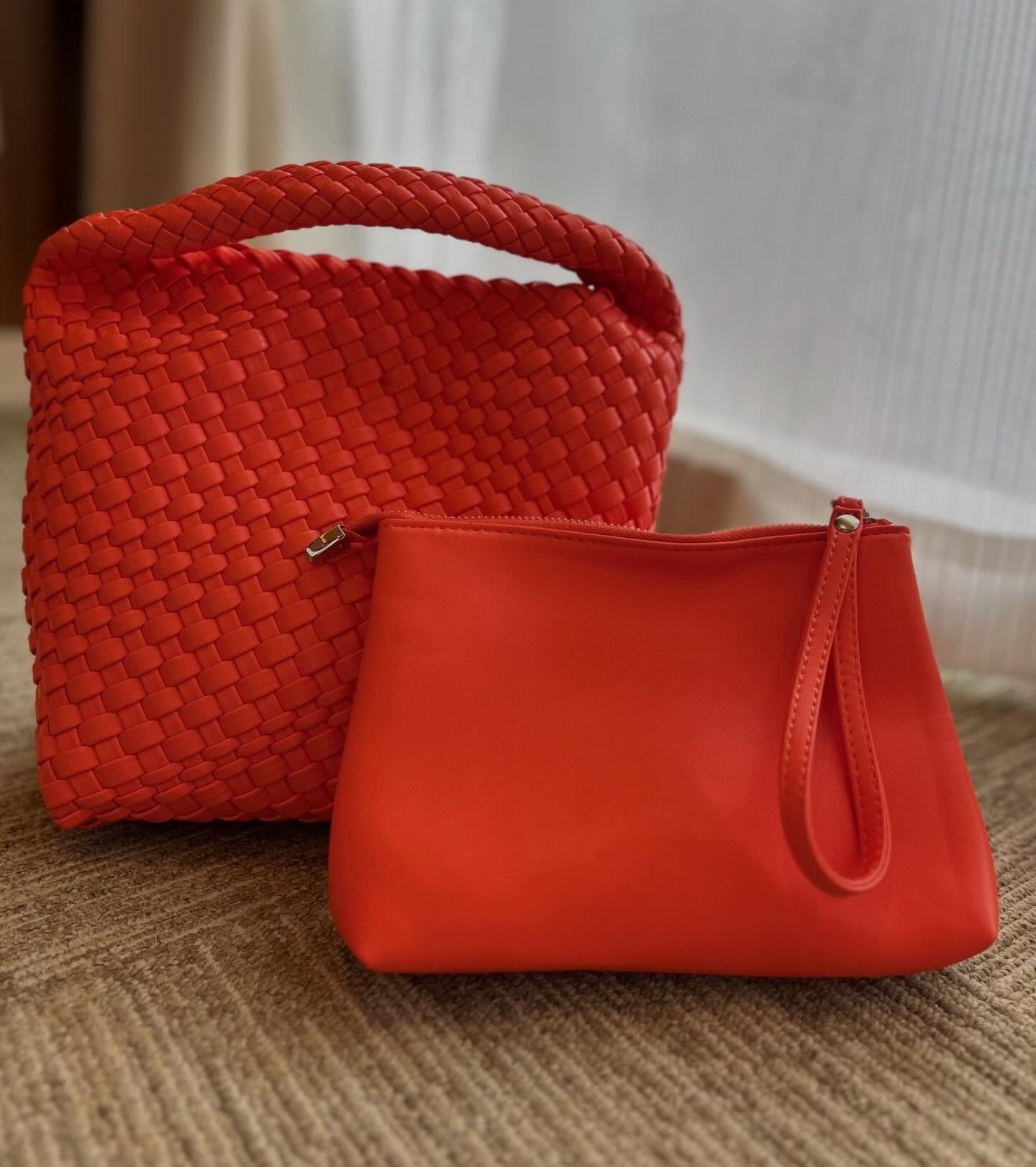 9カラー/カゴバッグ/編みバッグ/ショルダーバッグ/ワンハンドル/ポーチ付き/レディース/ホワイト/ブラック/グリーン/ベージュ/ライトグリーン/レッド/ブラウン/ブルー/イエロー