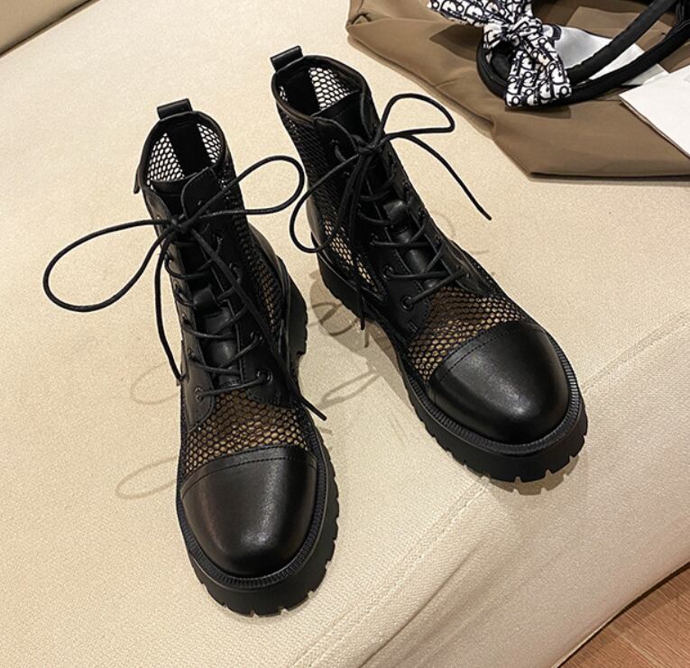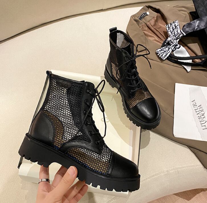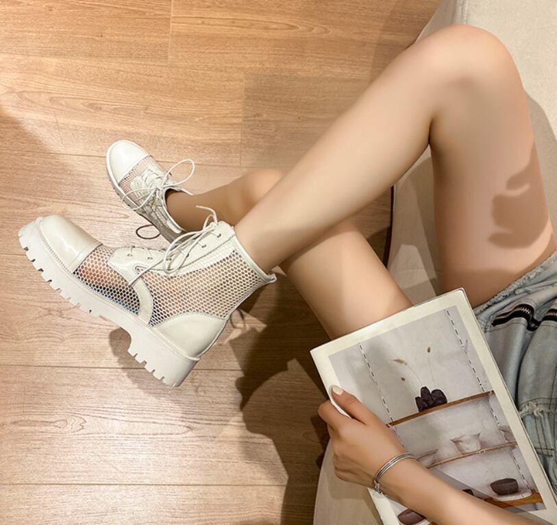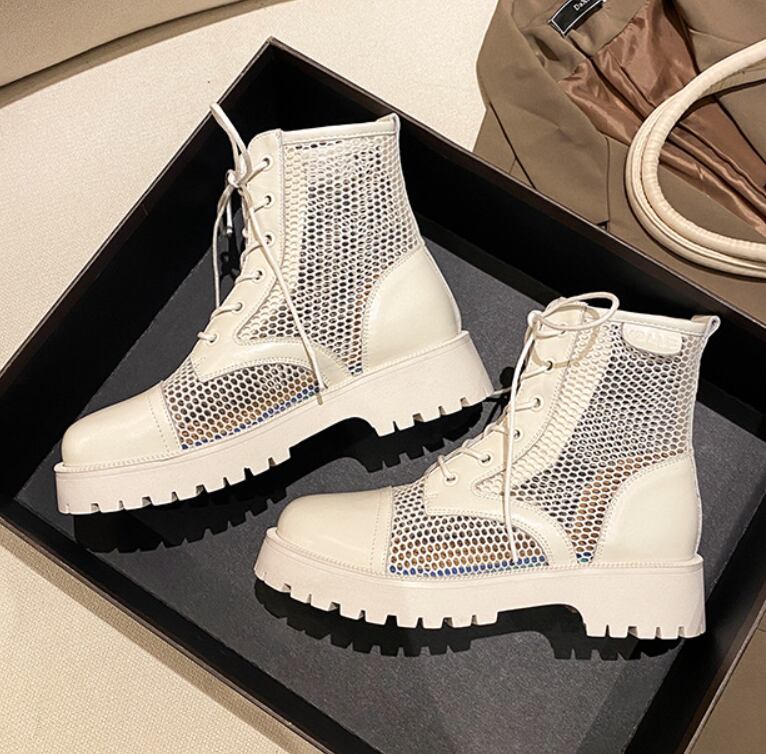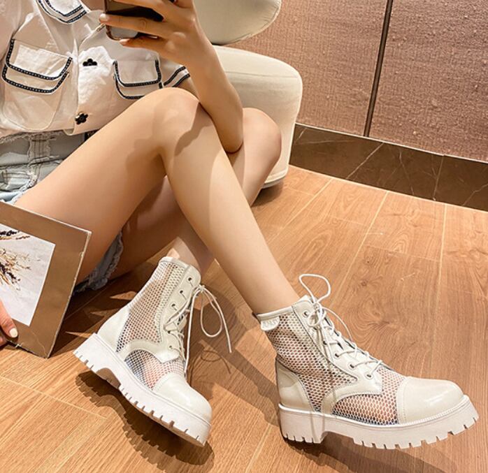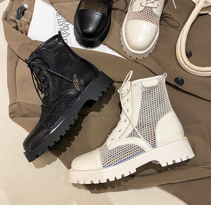トレンド感漂うメッシュブーツ。