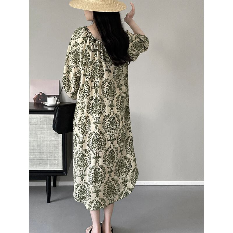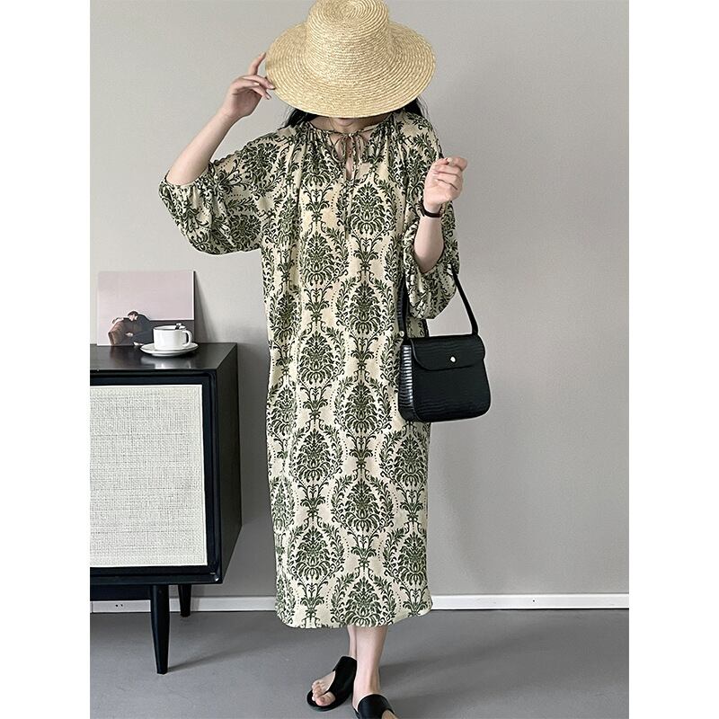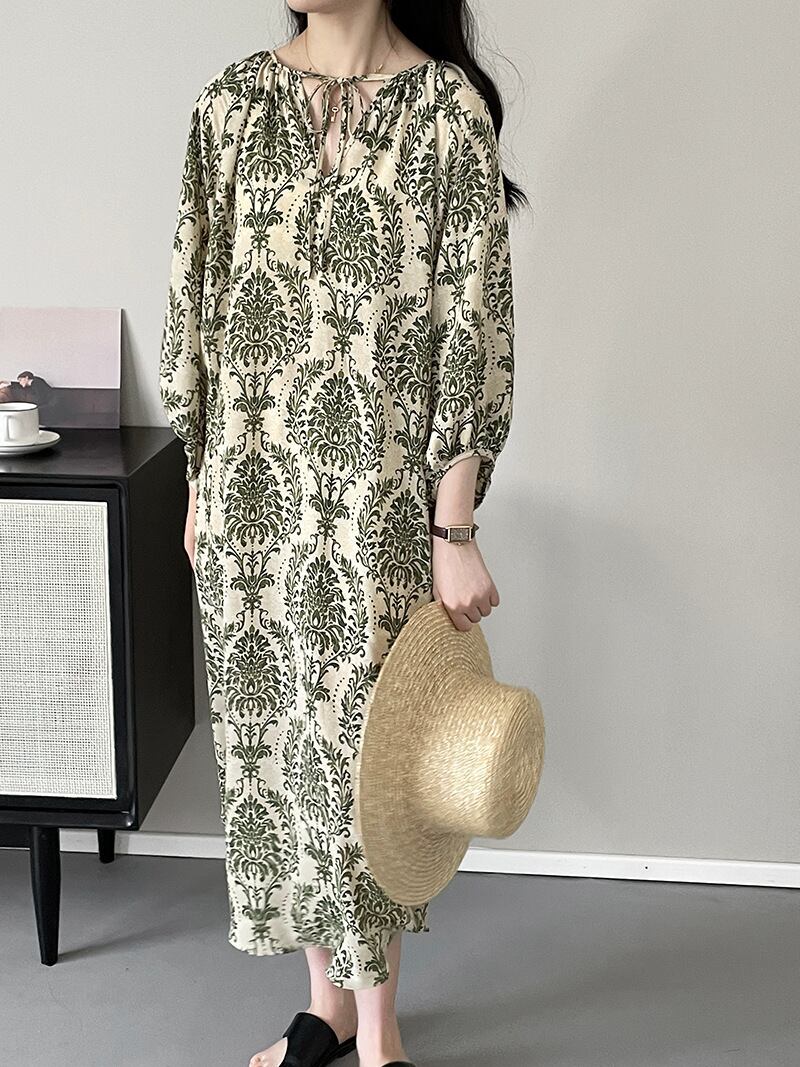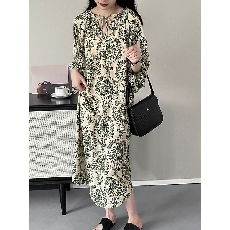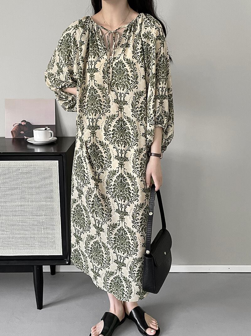 大人っぽい総柄デザインが魅力のワンピース。