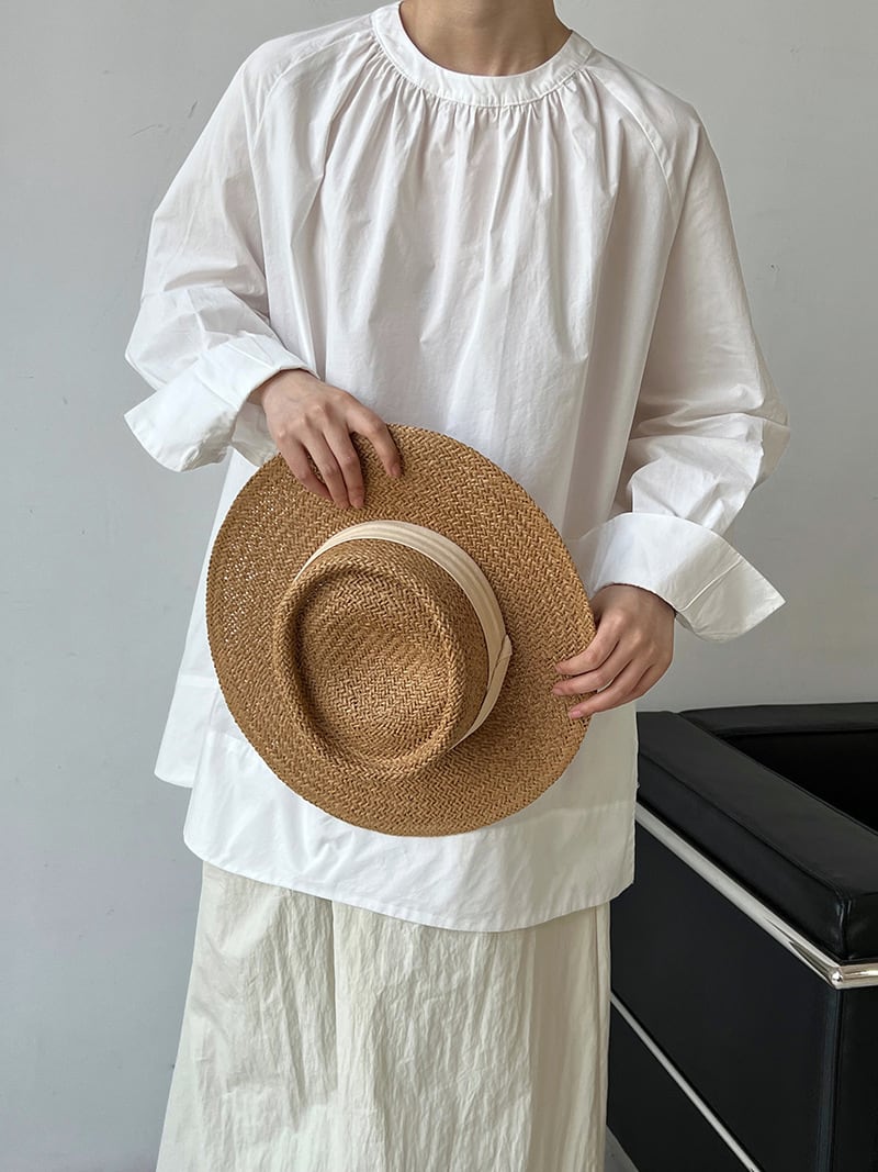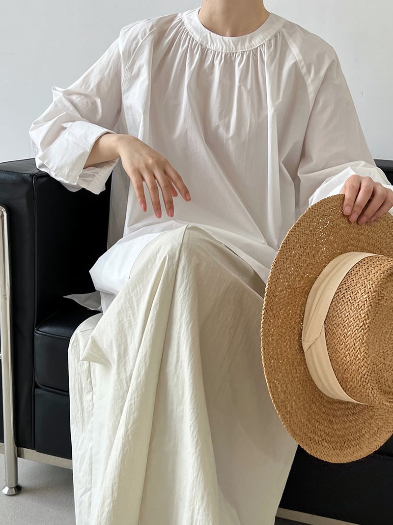 ラウンドネックで顔周りをすっきりと見せながら、