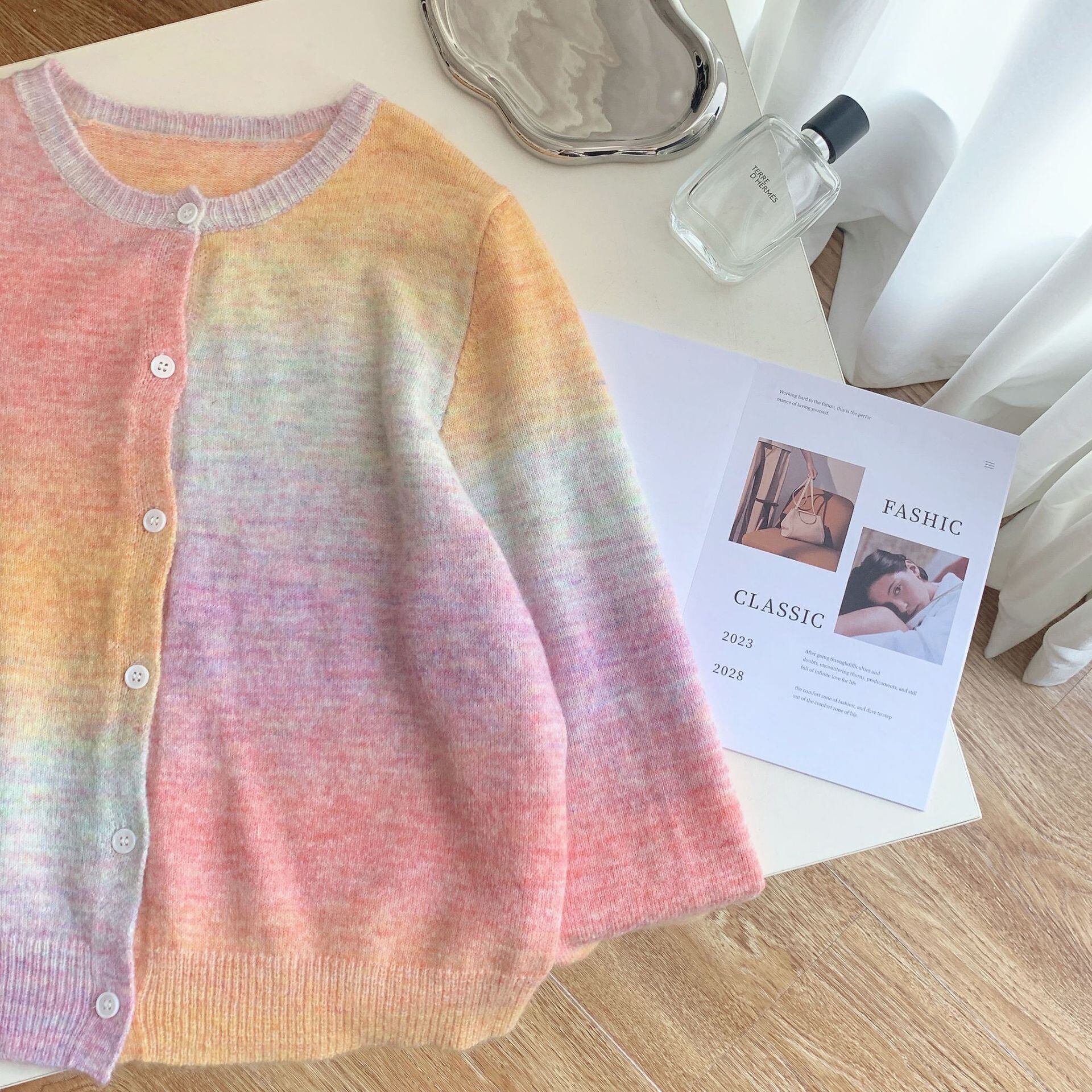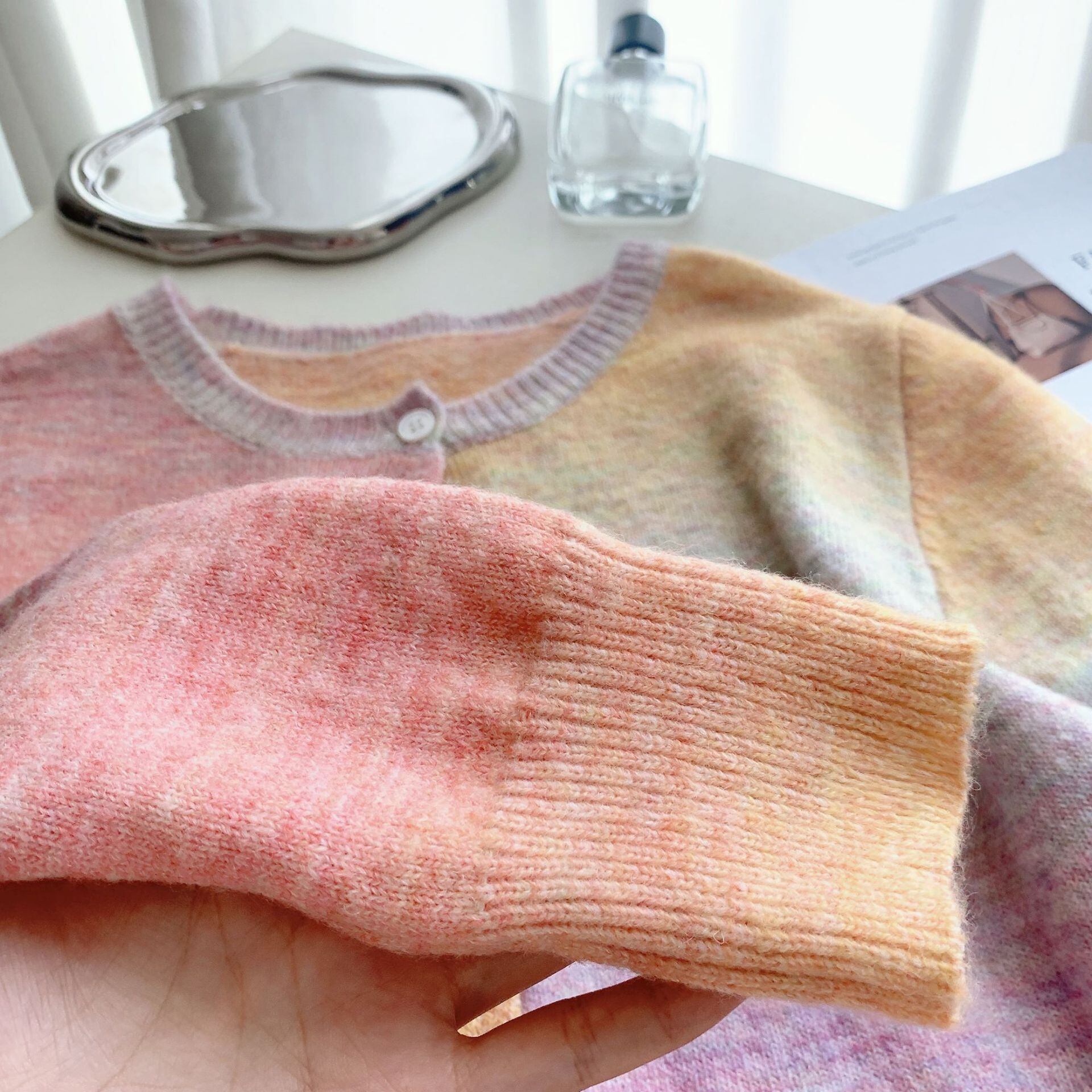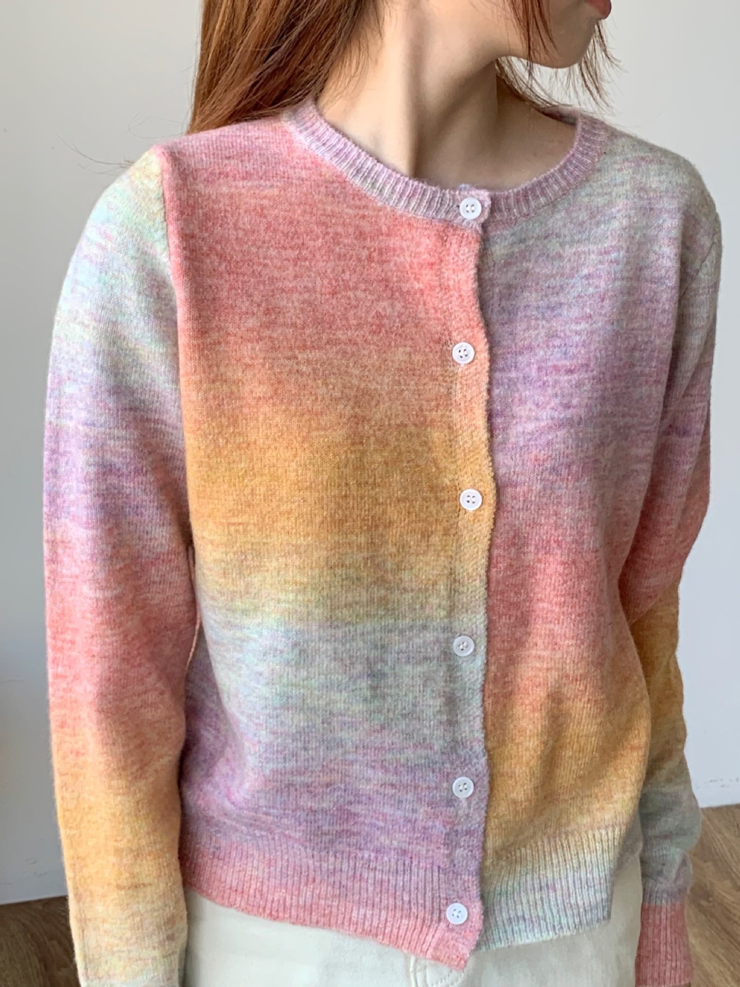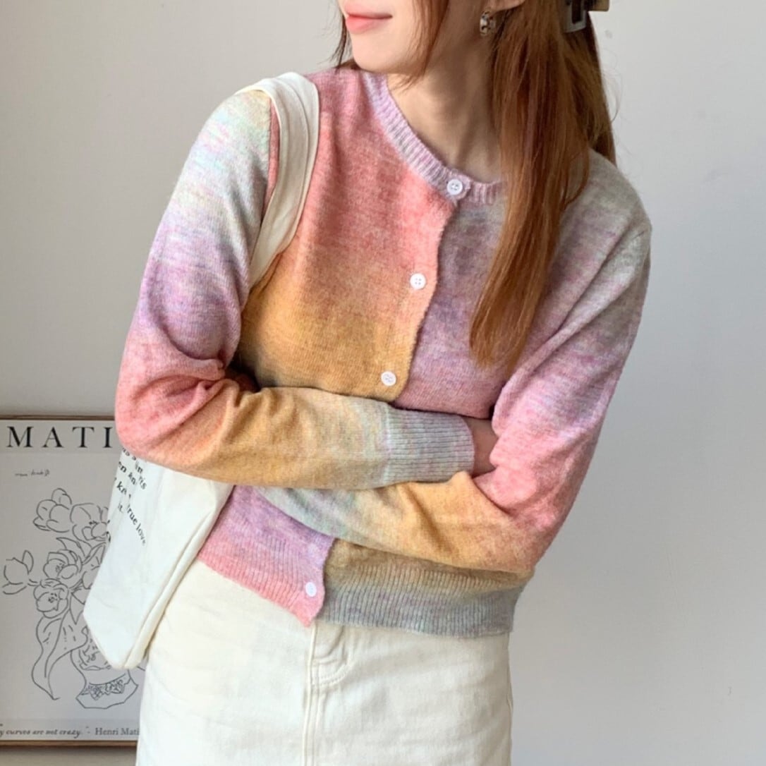 タイダイ柄が特徴のカーディガン。