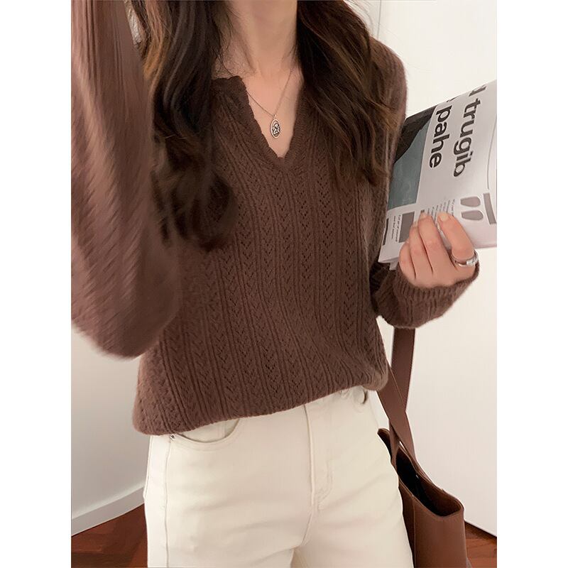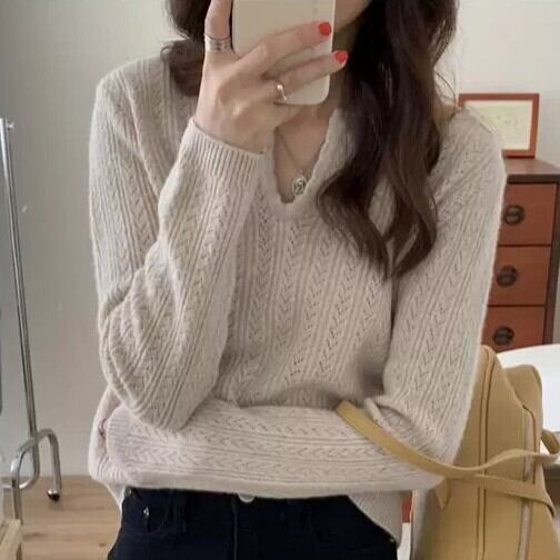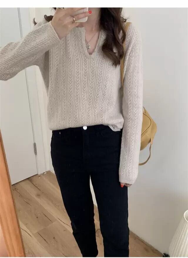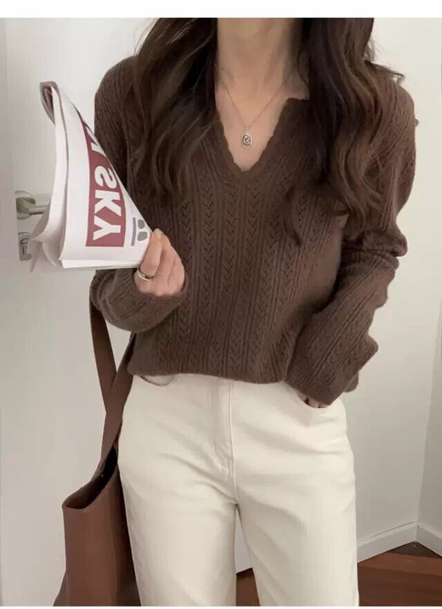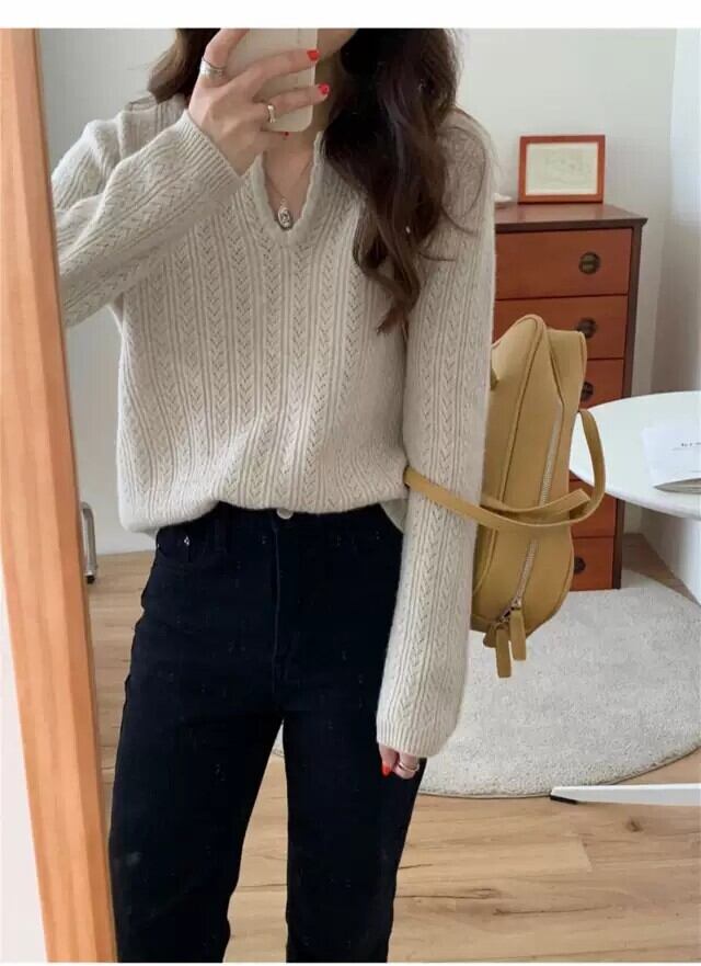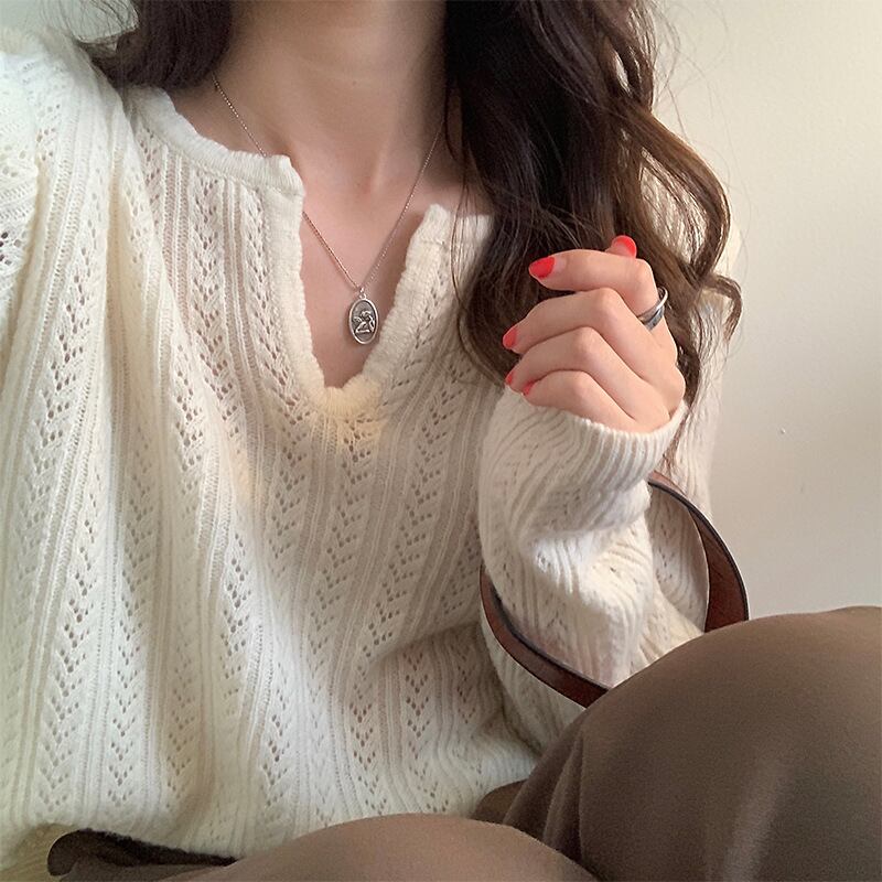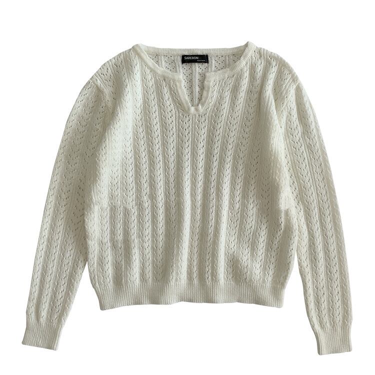 キーネックとストレートなシルエットが女性らしさを引き立て、