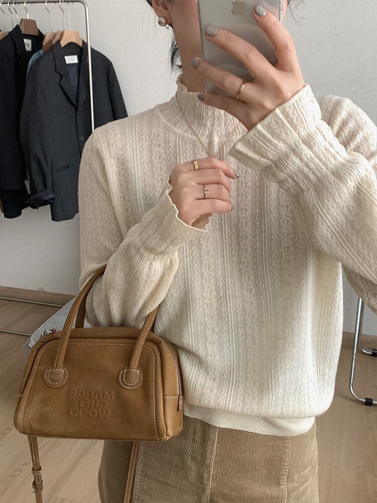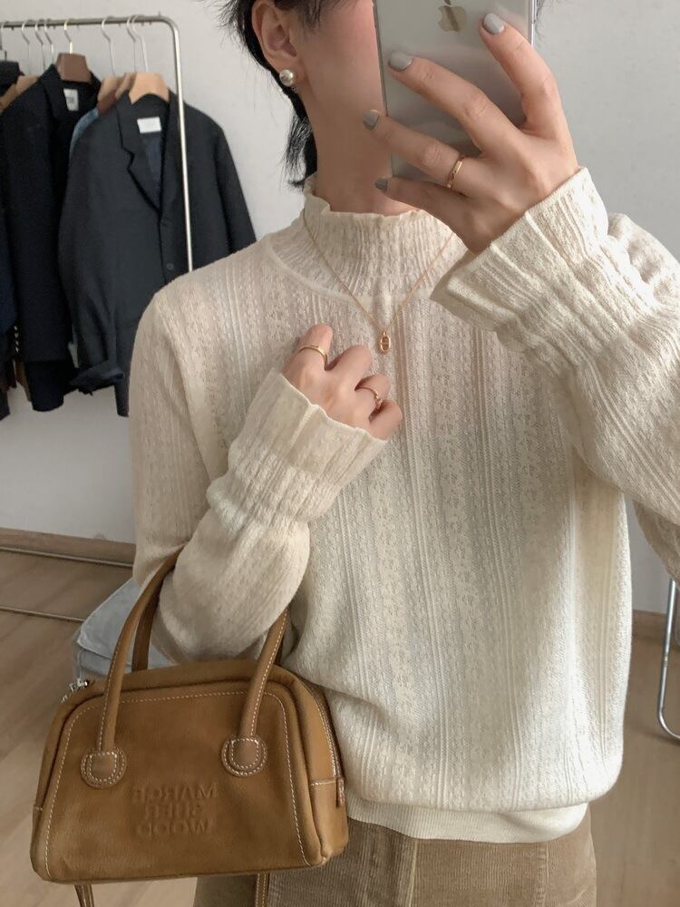 ゆるっと着れるシルエットながらも透かし柄なので重くなりすぎず、軽やかな印象で着て頂けます。