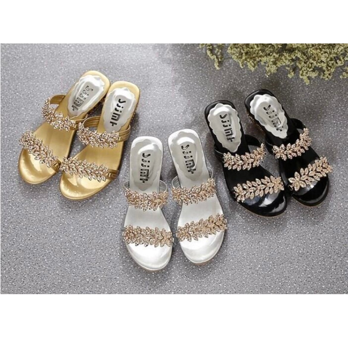 大きなビジューが印象的なサンダルです。ビジューの配置にもこだわりバランスがとても綺麗!