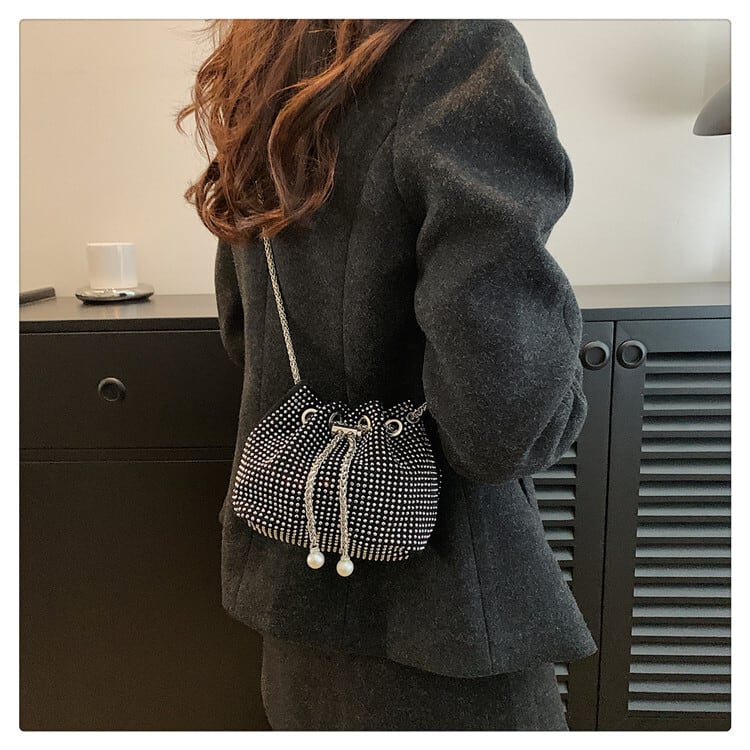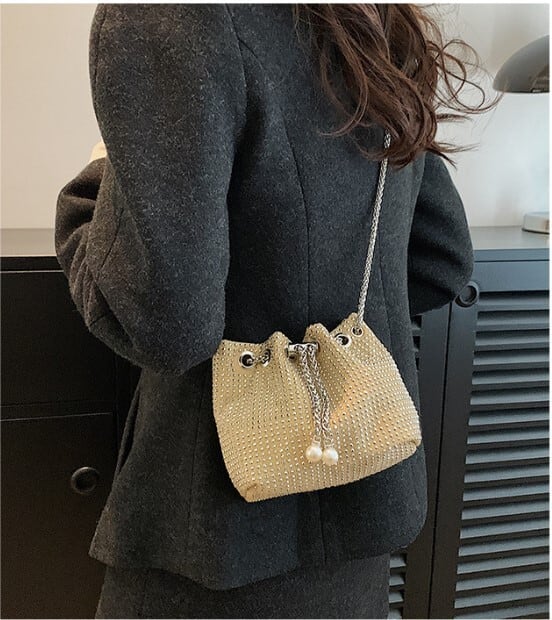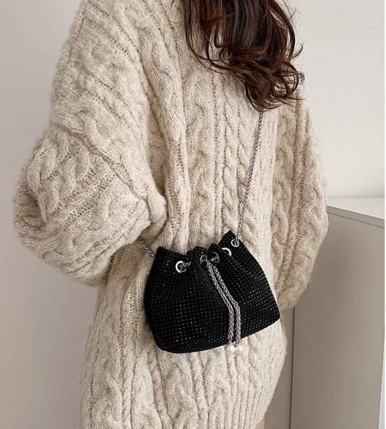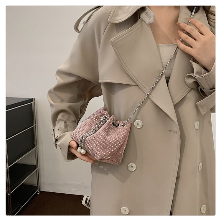 スタッズを全面に散りばめたインパクト大のショルダーバッグ。