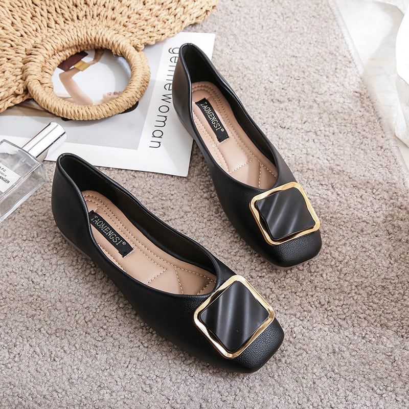 ゴールドのメタルパーツがきらりと足元で輝き、アクセサリーのように足元を華やかにしてくれる1足。