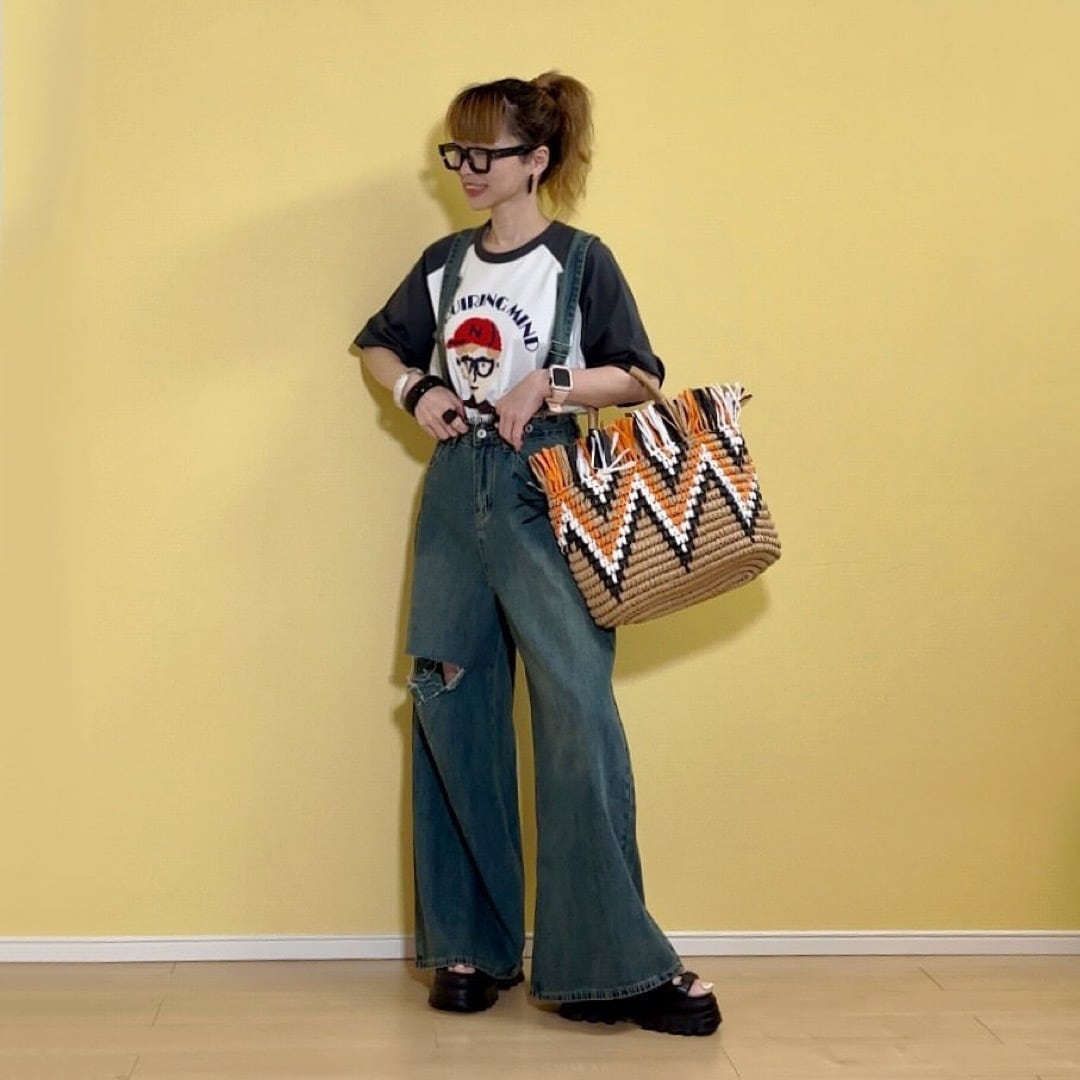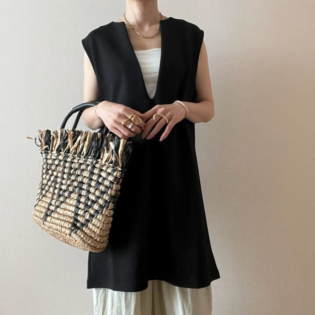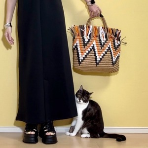スタイリング次第で、キレイめにもカジュアルにも馴染むデザインのストローバッグ♪