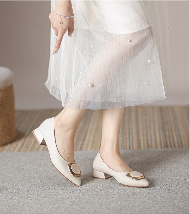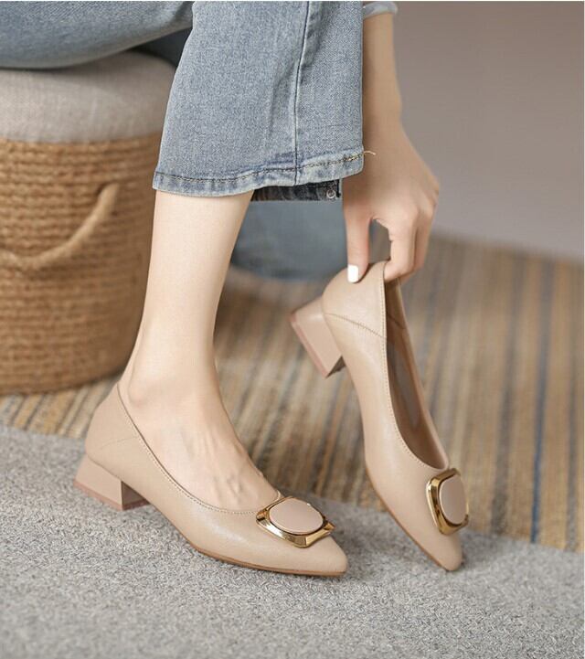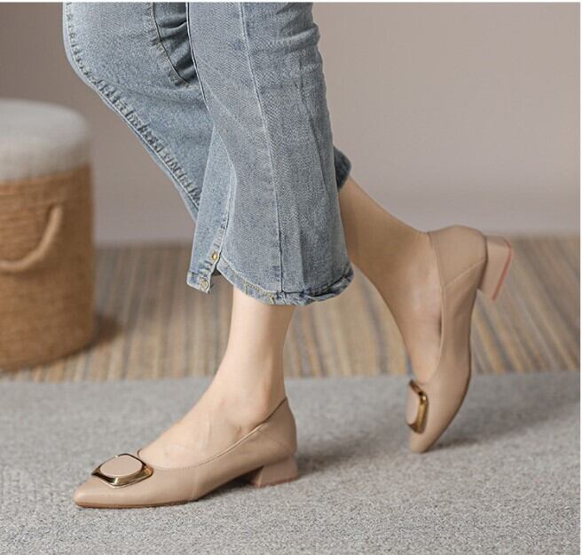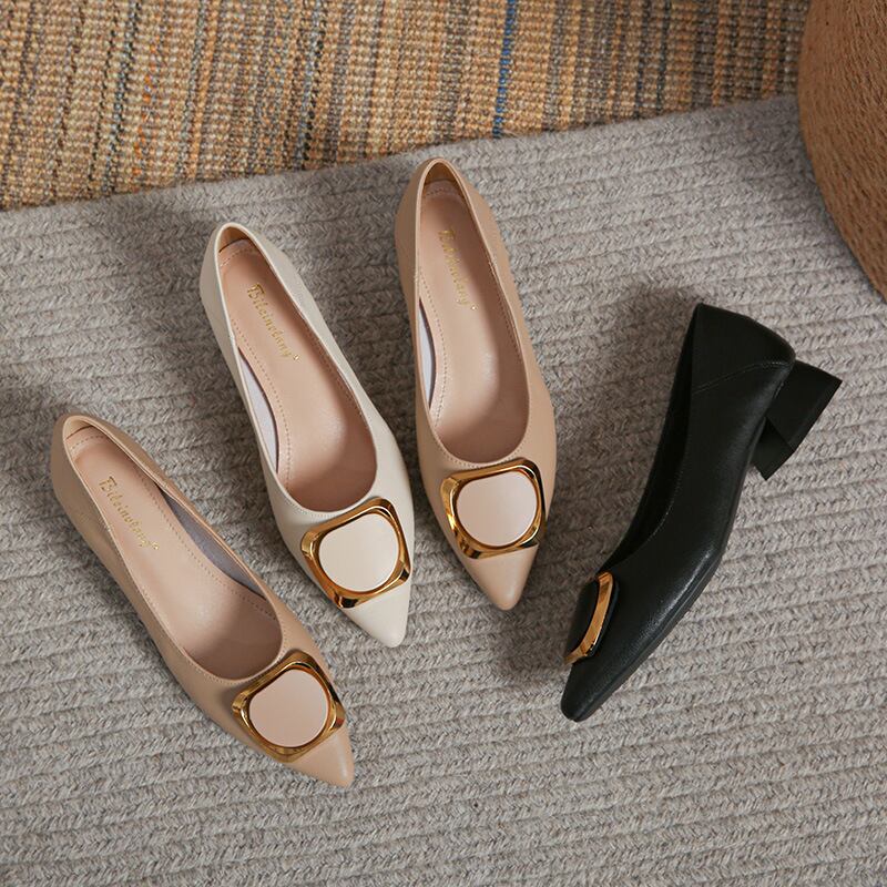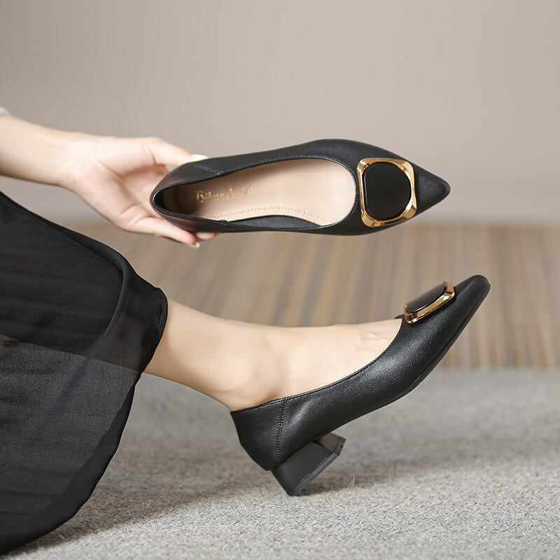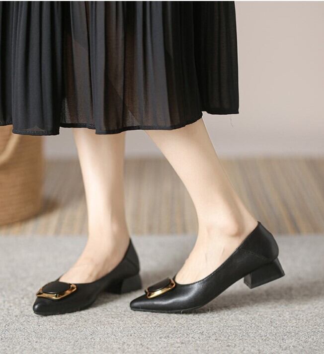 エレガントなタイトスカートやパンツスーツなど、足元のバックルが映えるシンプルなスタイリングに合わせるのがおすすめ。