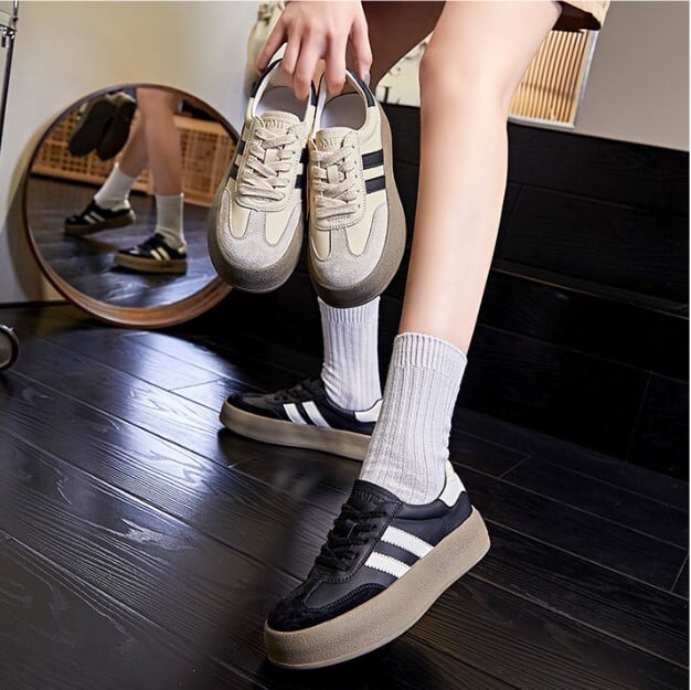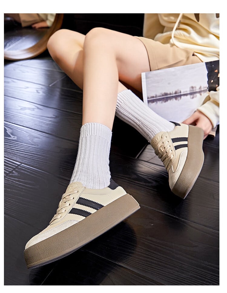 厚底で脚をきれいに見せてくれるスニーカー。