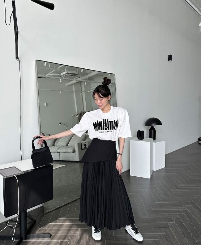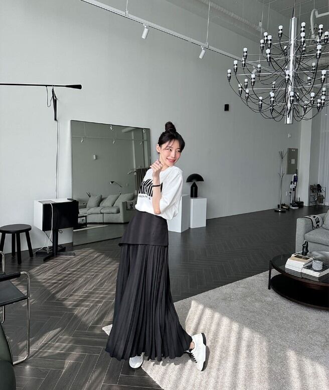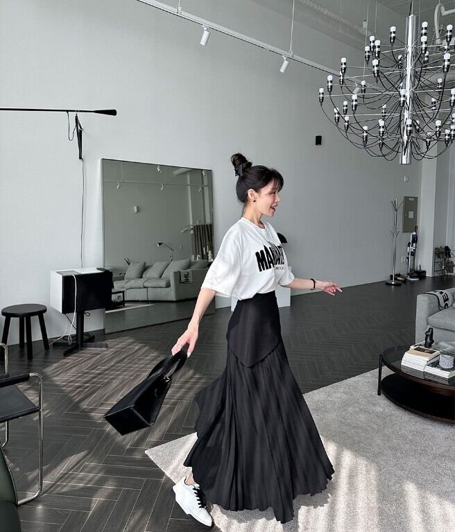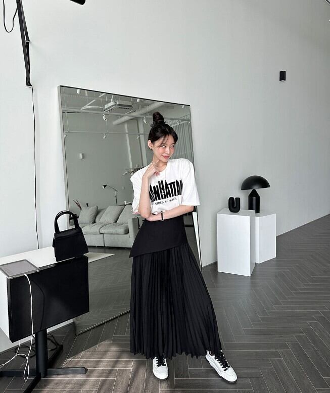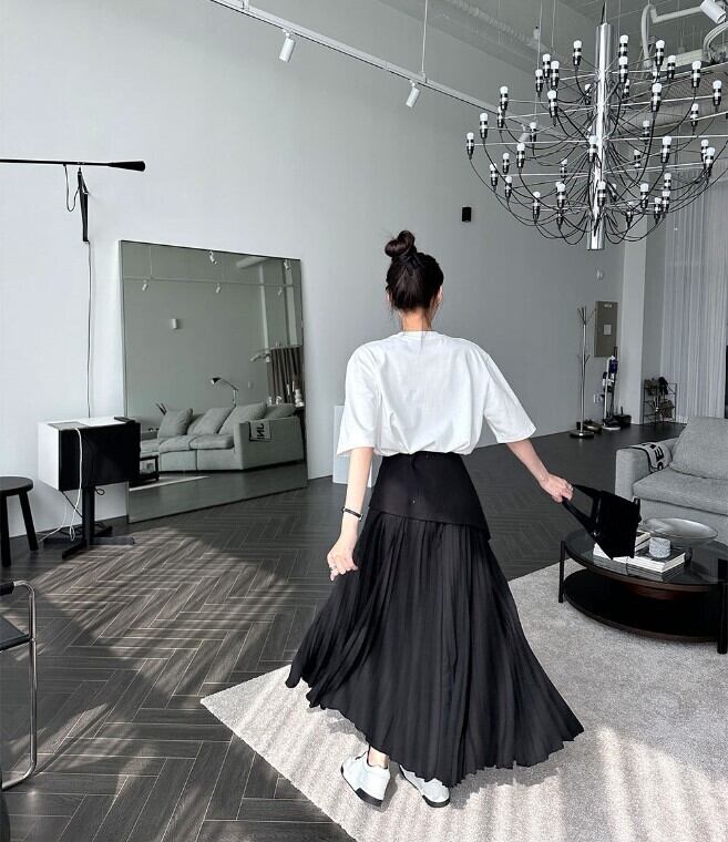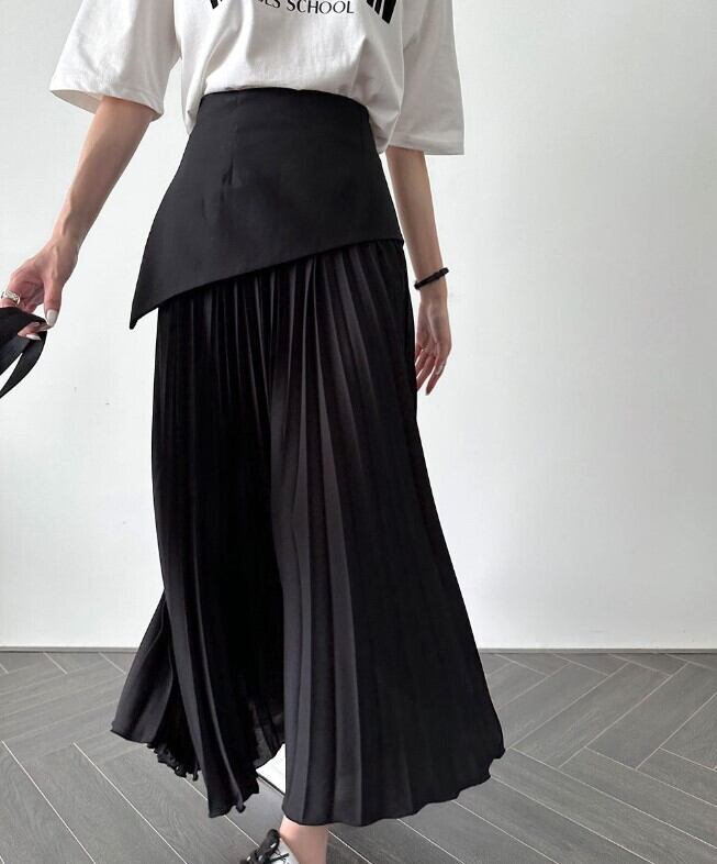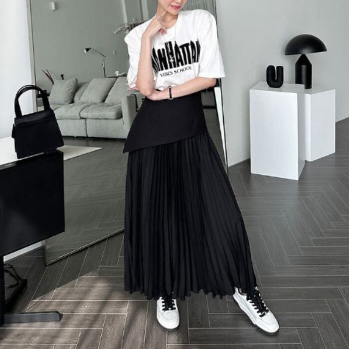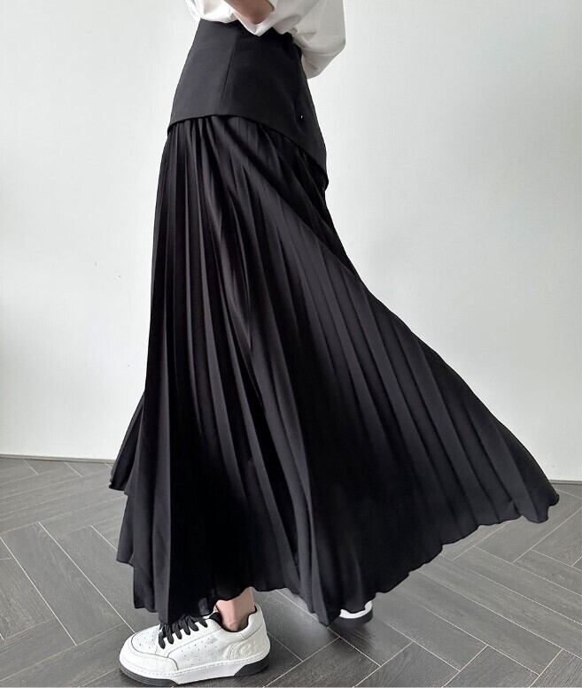 女性らしさが惹き立つアシメ切り替えプリーツロングスカートが登場しました♪