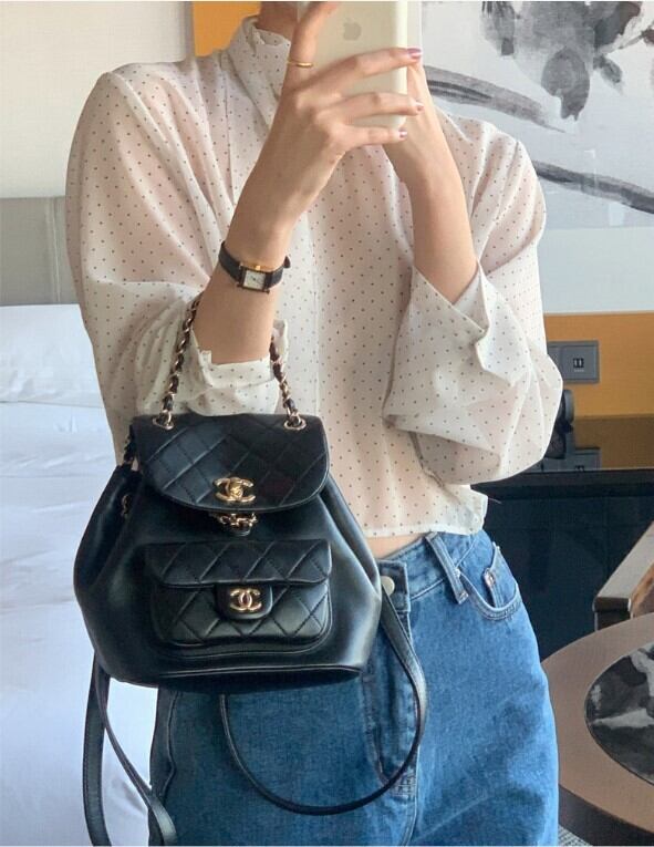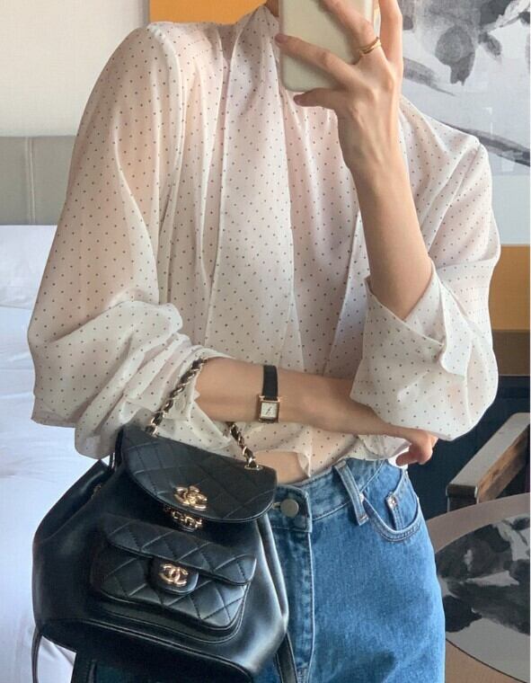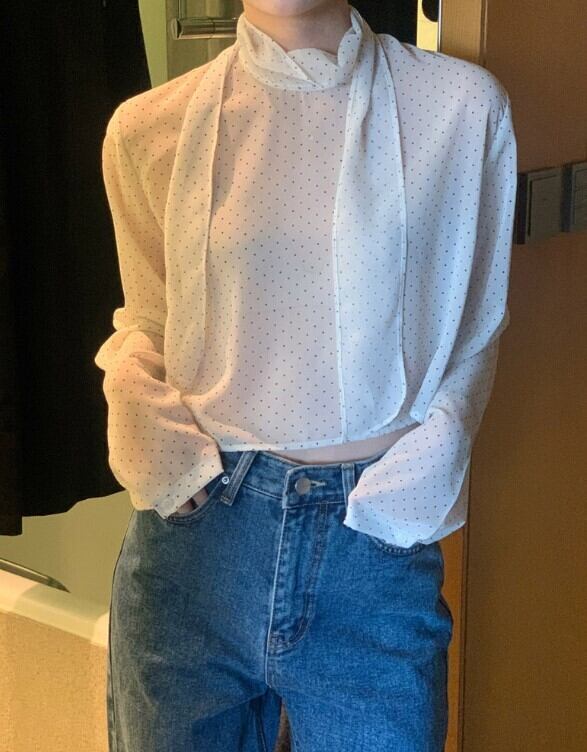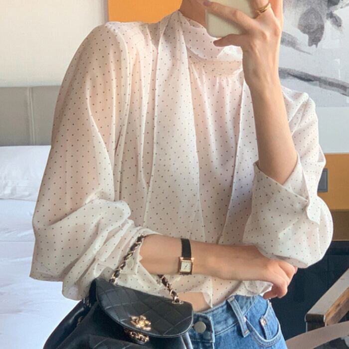 シアー素材で軽やかな風合いに仕上げたドットボウタイブラウス。