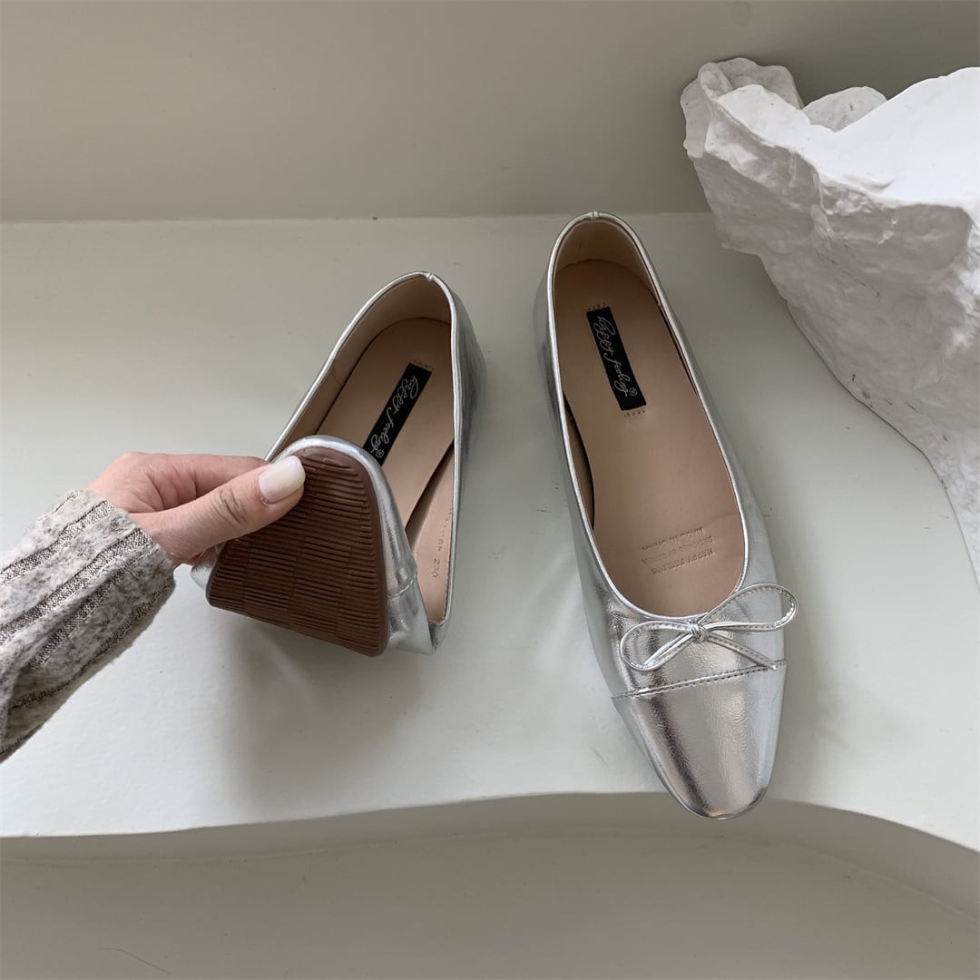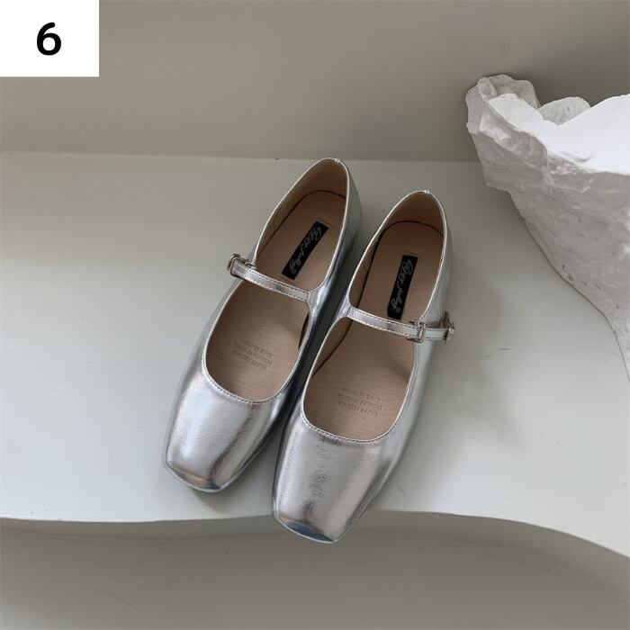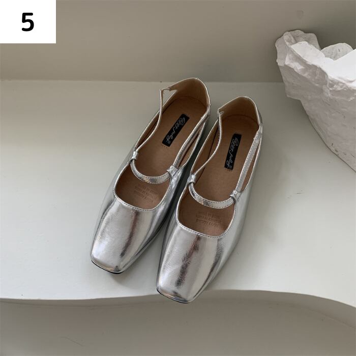 リボンデザインやストラップがポイントになったフラットシューズ。