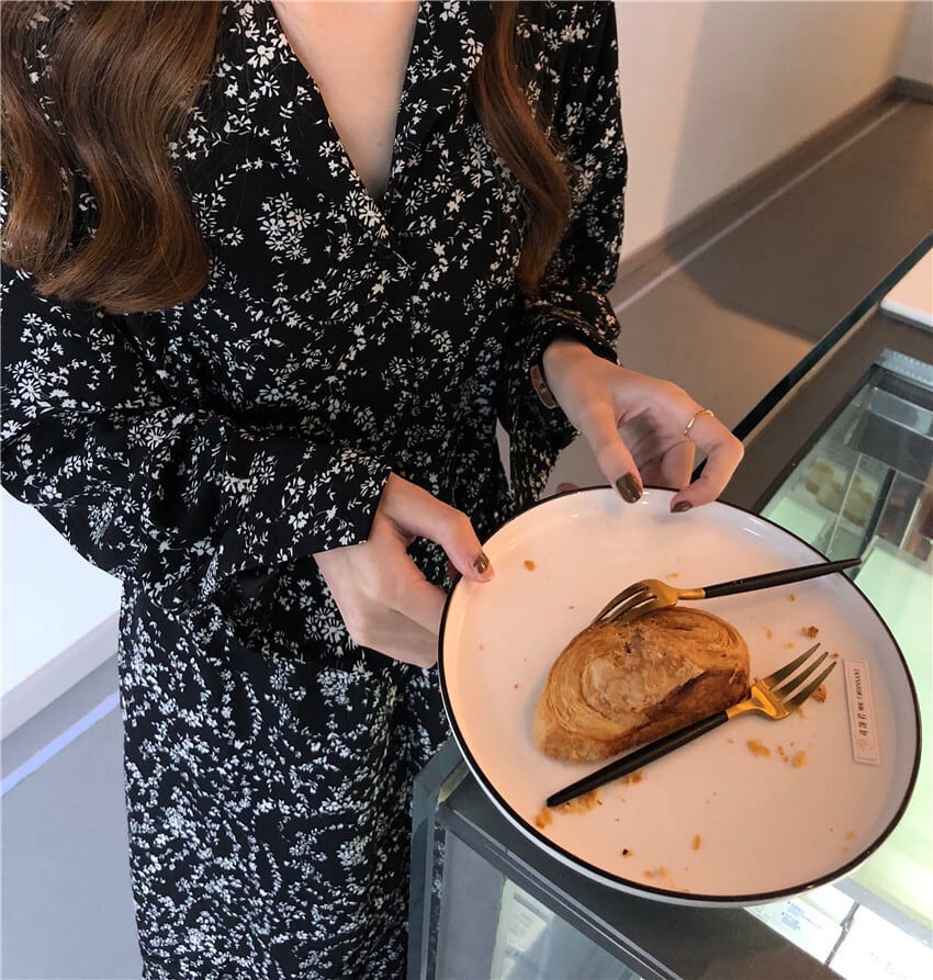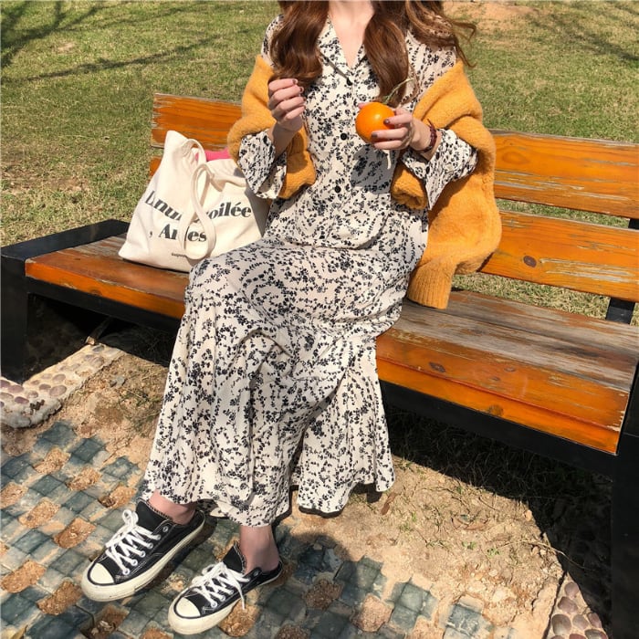 ヴィンテージライクな素材に、オリジナルの小花柄をプリントしたワンピース。