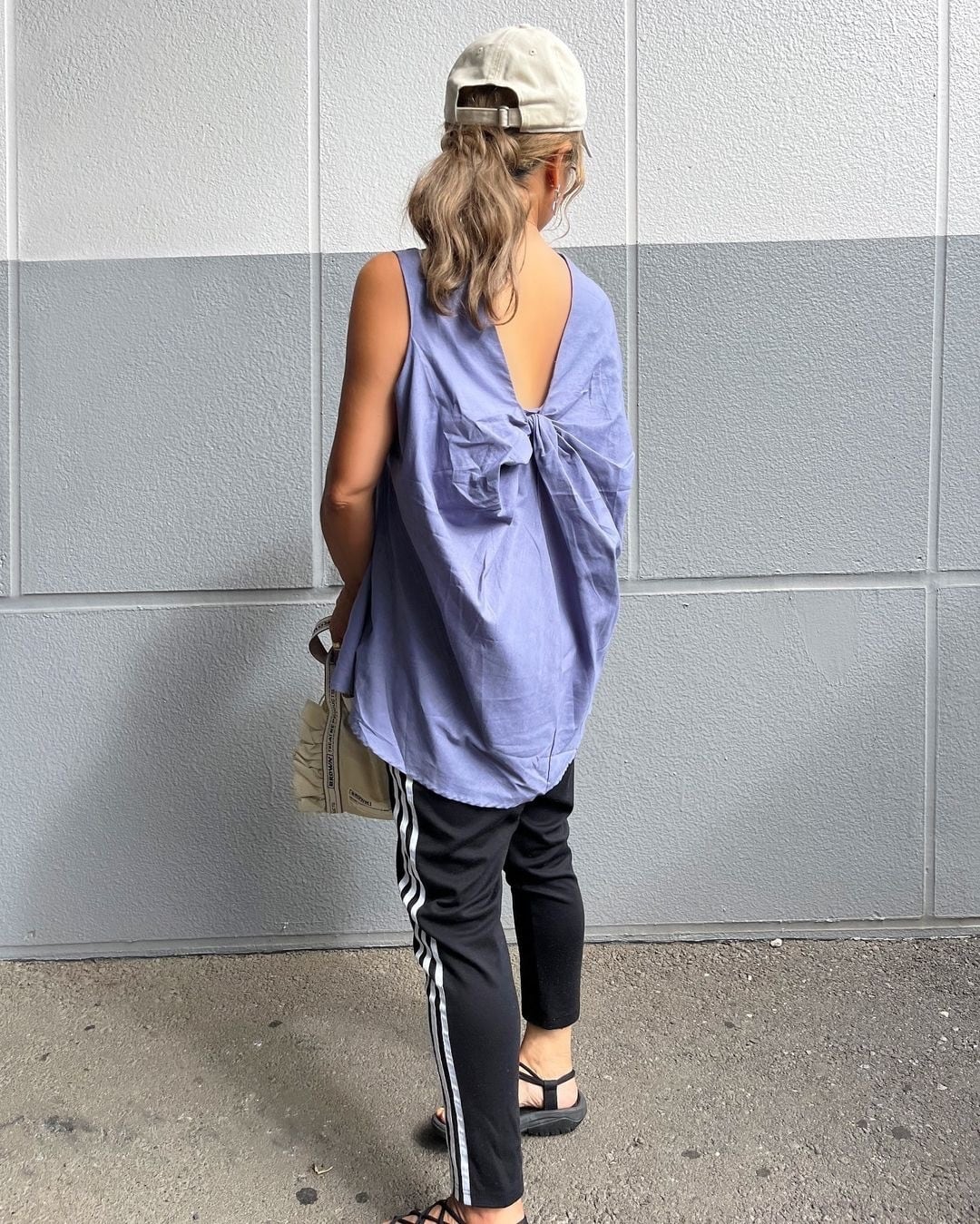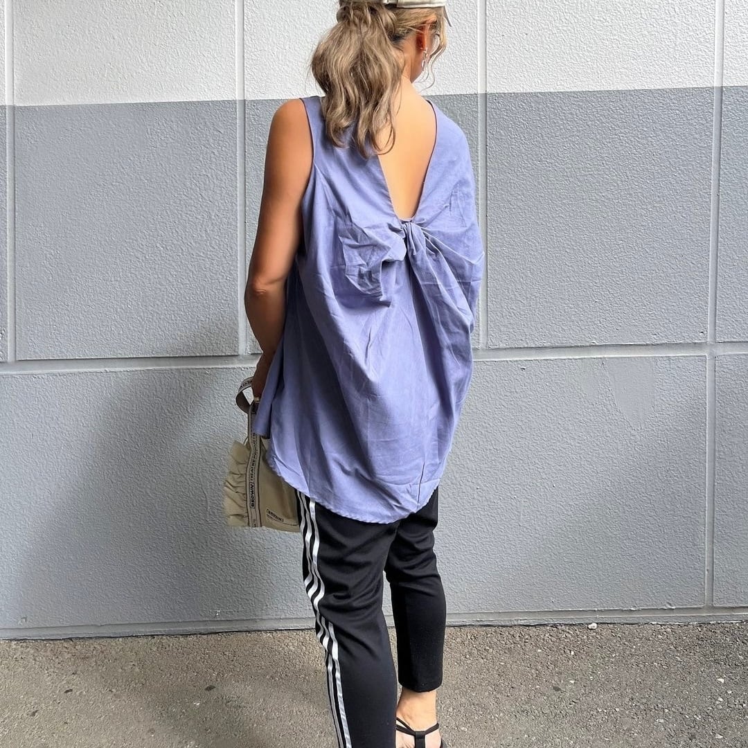 背中部分に施されたツイストデザインが個性的でトレンド感溢れる印象!